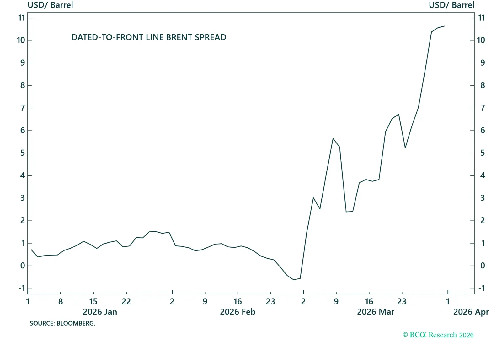 The dated-to-front line Brent spread measures the difference between the physical dated Brent price and the frontline Brent futures price, signaling a tightness in the spot market.