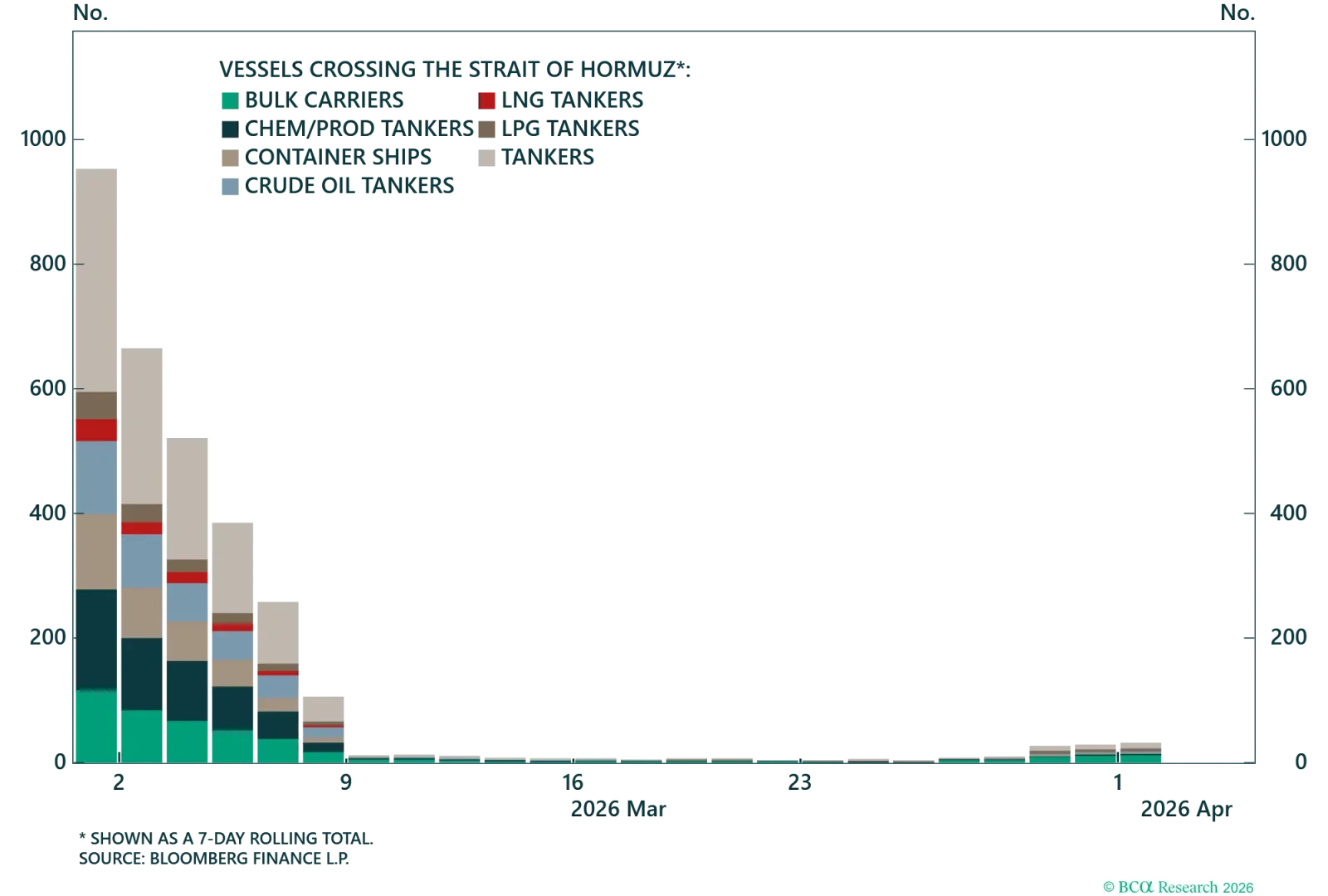 Post-conflict, flows through the Strait of Hormuz has collapsed.