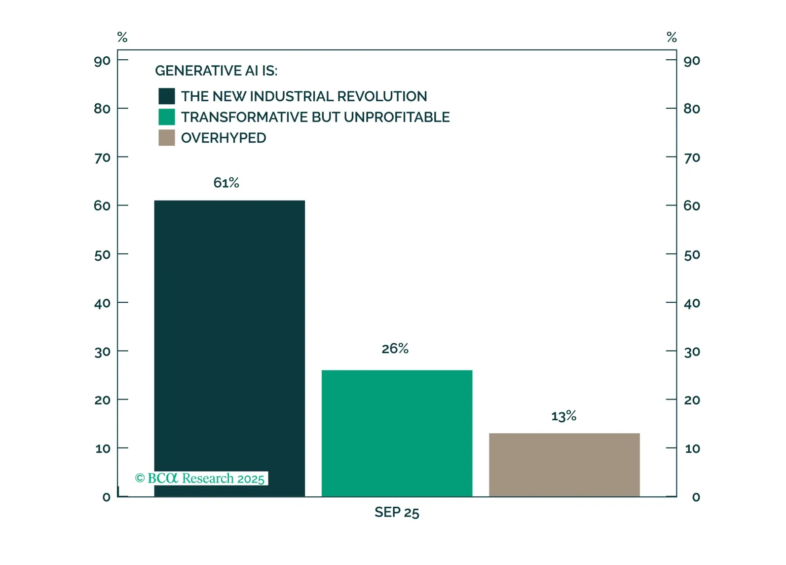 According to our latest client poll, most respondents are optimistic about the Generative AI's potential. Investors remain divided on whether current equity valuations reflect a bubble. Economic concerns continue to center on bond…