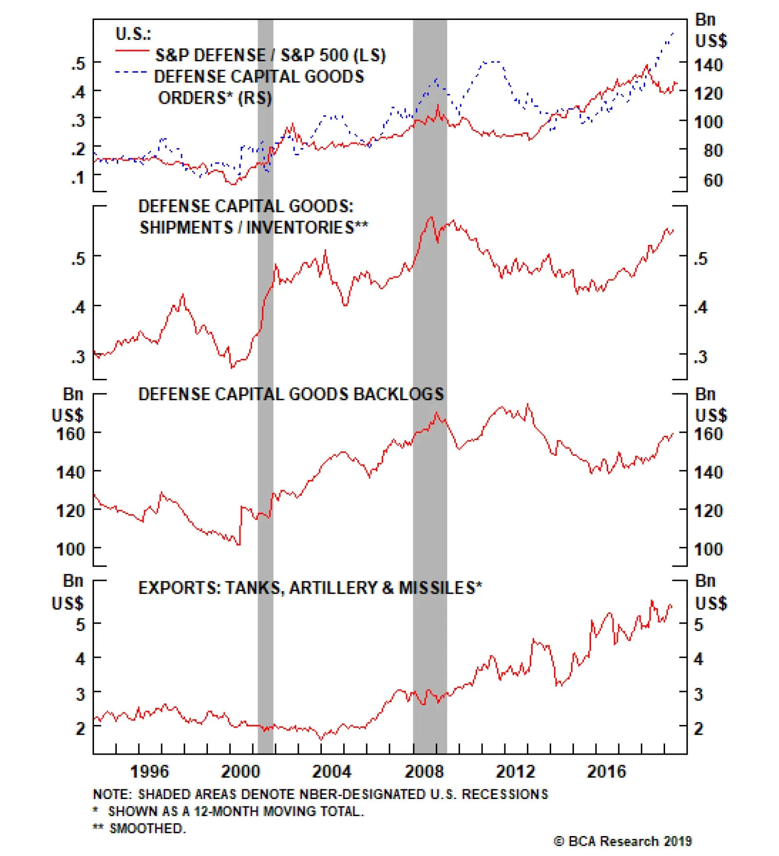 Overweight Though the pure-play BCA defense index has retreated somewhat from the mid-2018 highs, our thesis remains solidly on the offensive. As a reminder, we have been overweight the pure-play BCA defense index since late-…
