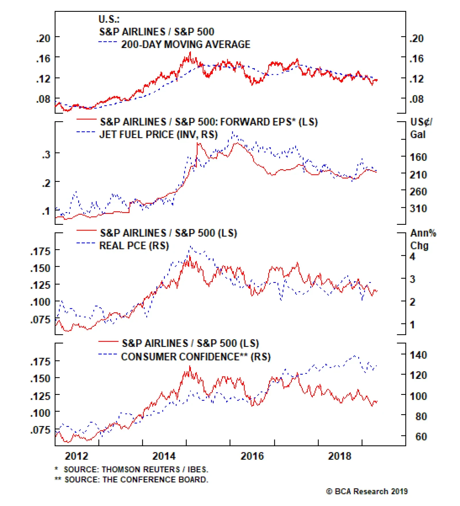 When our U.S. Equity Strategy team moved to an overweight recommendation on the S&P airlines index last year, they noted three pillars supporting the onset of an earnings outperformance: a drubbing in oil prices significantly…