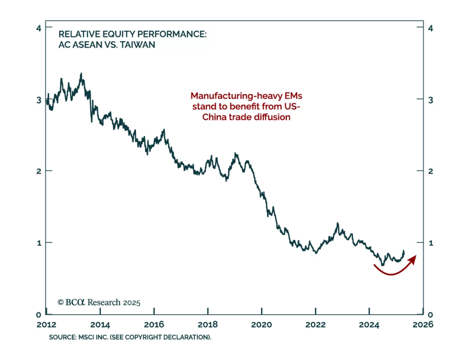Taiwan, Singapore, and Korea's currencies might appreciate versus the USD, driven by capital repatriation from domestic private investors away from the US. This thesis is less pertinent to India, Indonesia, and the Philippines…