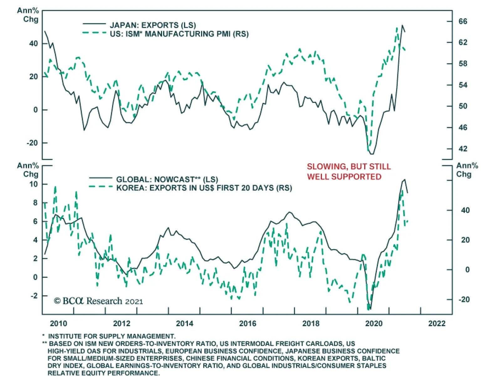 Japanese exports in June and Korean exports in the first 20 days of July both surprised to the upside and suggest that Asian trade remains supported. Japanese exports slowed by only one percentage point in June to 48.6% y…