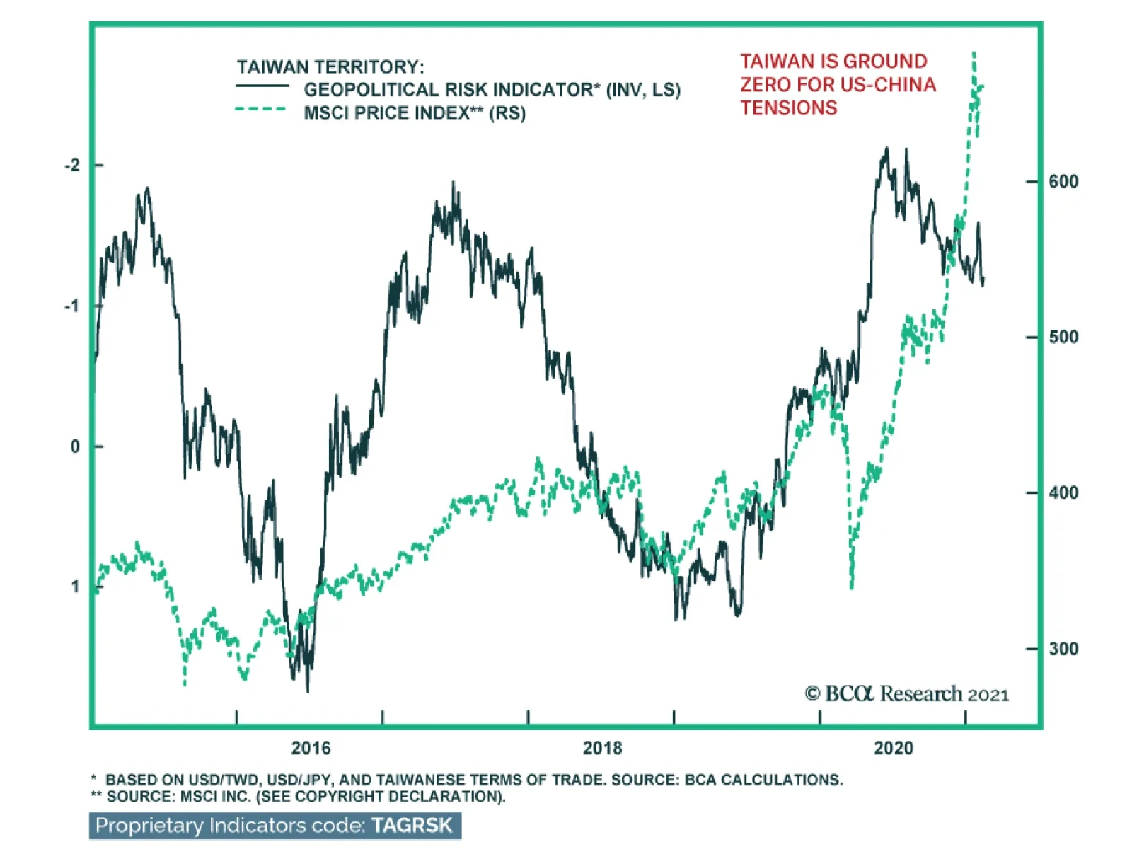 South Korean geopolitical risk is also beneath the radar, though stocks have corrected recently and emerging market investors should generally favor Korea, especially over Taiwan. The first risk to Korea is that the US will apply more pressure on Seoul to join allied supply chains and exclude shipments of sensitive goods to China. The second risk is that North Korea – which Biden is deliberately ignoring in his opening speeches – will demand America’s attention through a new series of provocations that will have to be rebuked with credible threats of military force. Chart 7Markets Starting To Price Taiwan Strait Geopolitical Risk