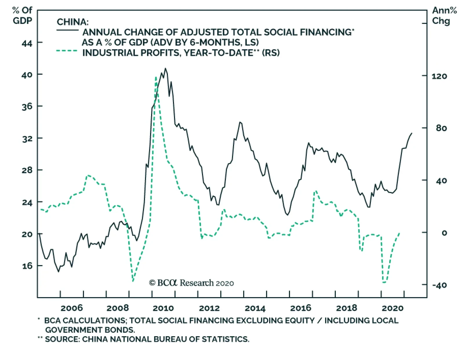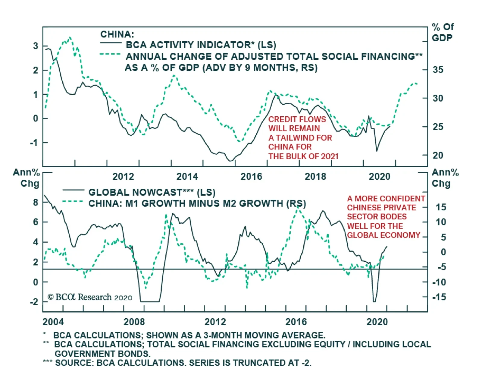 Dear Client, Next week I will be presenting our 2021 outlook on China at our last webcasts of the year "China 2021 Key Views: Shifting Gears In The New Decade". The webcasts will take place next Wednesday, December 16 at 10:00AM EST (English) and at 9:00 AM Beijing/HK/Taipei time, 12:00 PM Australian Eastern time (Mandarin). In addition, our final weekly publication for 2020 will be on Wednesday, December 16, 2020. Best regards, Jing Sima, China Strategist Highlights Chinese policymakers have shifted their focus from supporting economic growth at all costs to risk management. The trend will likely gather speed in 2021. A deceleration in credit growth next year is almost a certainty. While policymakers will be data dependent and the slowdown will be managed, our baseline scenario suggests a decline of approximately three percentage points in credit impulse in 2021. Chinese stocks could still trend higher in Q1, but prices will falter as the market starts to price in a tighter policy environment and slower profit growth in 2H21. We recommend a tactical neutral stance in both the onshore and offshore markets. We continue to favor Chinese government bonds on a cyclical basis, while gyrations in the onshore corporate bond market will endure for at least the next six months. Feature China’s economic growth momentum has strengthened in recent months, but the nation’s policy stance has also turned more hawkish. As set out in the 14th Five-Year Plan, 2021 will mark the beginning of a new era in which policymakers will switch gears from building a "moderately prosperous society" to becoming a "great modern socialist nation.” The pivot means China’s top officials may tolerate slower economic growth, implement tougher financial and industry regulations, and accelerate structural reforms by allowing more bankruptcies and industry consolidations. As we pointed out in our November 4, 2020 Strategy Report,1 external challenges combined with a stronger domestic leadership will allow China to initiate more meaningful reforms in the next decade than in the past ten years. The reforms will strengthen our structural view on China’s economy and financial assets, but this restructuring will create headwinds for growth in the short to medium term. Therefore, investors should maintain low expectations for Chinese growth and financial asset prices. In 2021, credit growth will decelerate, regulations will be tightened and the “old economy” will moderate in the second half of the year. We will discuss four main themes in our outlook for 2021. Key Theme #1: Macro Policy: Turning More Hawkish Government officials recently stepped up mention of financial risk containment in their public announcements, along with tightened industry regulations. Many market commentators are downplaying the risk of a tighter policy in 2021, citing China’s fragile recovery and a weak global economy. However, the current environment resembles the policy backdrop in late 2016/early 2017 when President Xi Jinping began his financial deleveraging campaign. Our policy framework suggests that China currently faces fewer constraints than in 2016/2017. Thus, the odds are high that the leaders will turn their tough rhetoric into action in the next six to twelve months. Importantly, despite low year-over-year GDP growth, the pace of China’s domestic economic recovery has been faster than in 2016 (Chart 1). The PMIs in both the manufacturing and service sectors have been above the 50 percent boom-bust threshold for nine consecutive months (Chart 2). The laggards in the economy - manufacturing investment and household consumption - have been consistently improving (Chart 3). Bond yields have climbed sharply, but given that corporate bond issuance only accounts for 10% of total social financing, the economic impact from rising corporate bond yields has been more than offset by the large number of government bonds issued (Chart 4). Moreover, the recovery in China’s export sector and current account balance has fared surprisingly well this year, propelled by the global demand for medical supplies and stay-at-home electronic goods (Chart 5). Portfolio inflows also have been strong, fueling a rapid appreciation in the RMB. Chart 1Current Economic Recovery In Better Shape Than In 2016