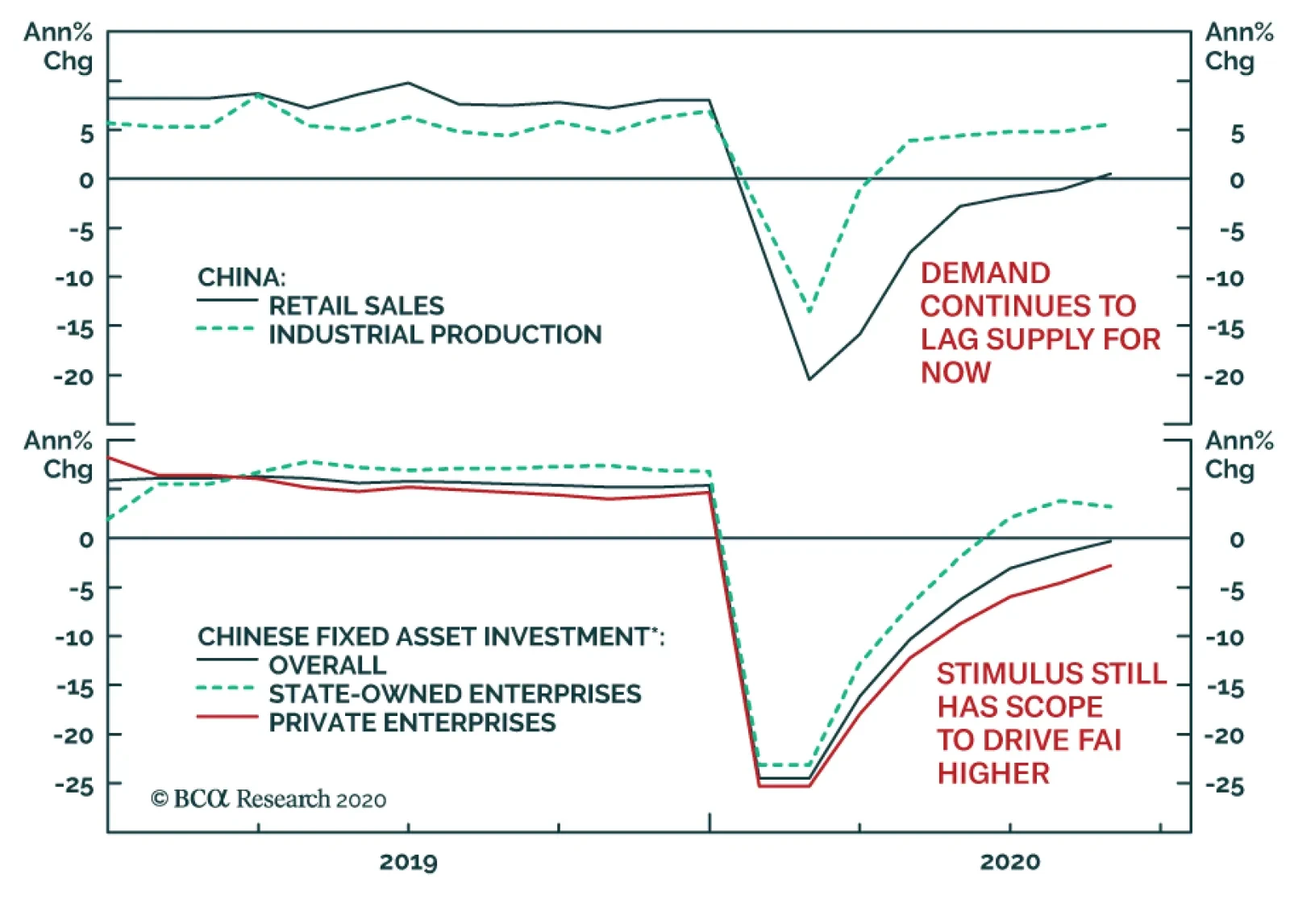 Highlights Economic data in August point to a faster recovery in demand than in production. The service-sector recovery is picking up speed; consumption growth remains negative, but will benefit from a steady rebound in the service sector. The strong upward momentum in China’s stock prices, on the other hand, has lost some steam since the second half of July. Policy supports and improving economic fundamentals still warrant a constructive stance on Chinese stocks over the coming 6 to 12 months. Feature Both soft and hard data released over the past couple of weeks indicate that China’s economic recovery remains on track. August’s official PMI new orders sub-index continued to advance, and the official non-manufacturing PMI made the largest month-to-month improvement since March when the Chinese economy reopened. Hard economic data, such as exports and sales of homes, cars and retail goods, show that both external and domestic demand growth is strengthening. Chart 1Chinese Stocks Taking A Breather From July's Rally, Despite Improving Economic Fundamentals