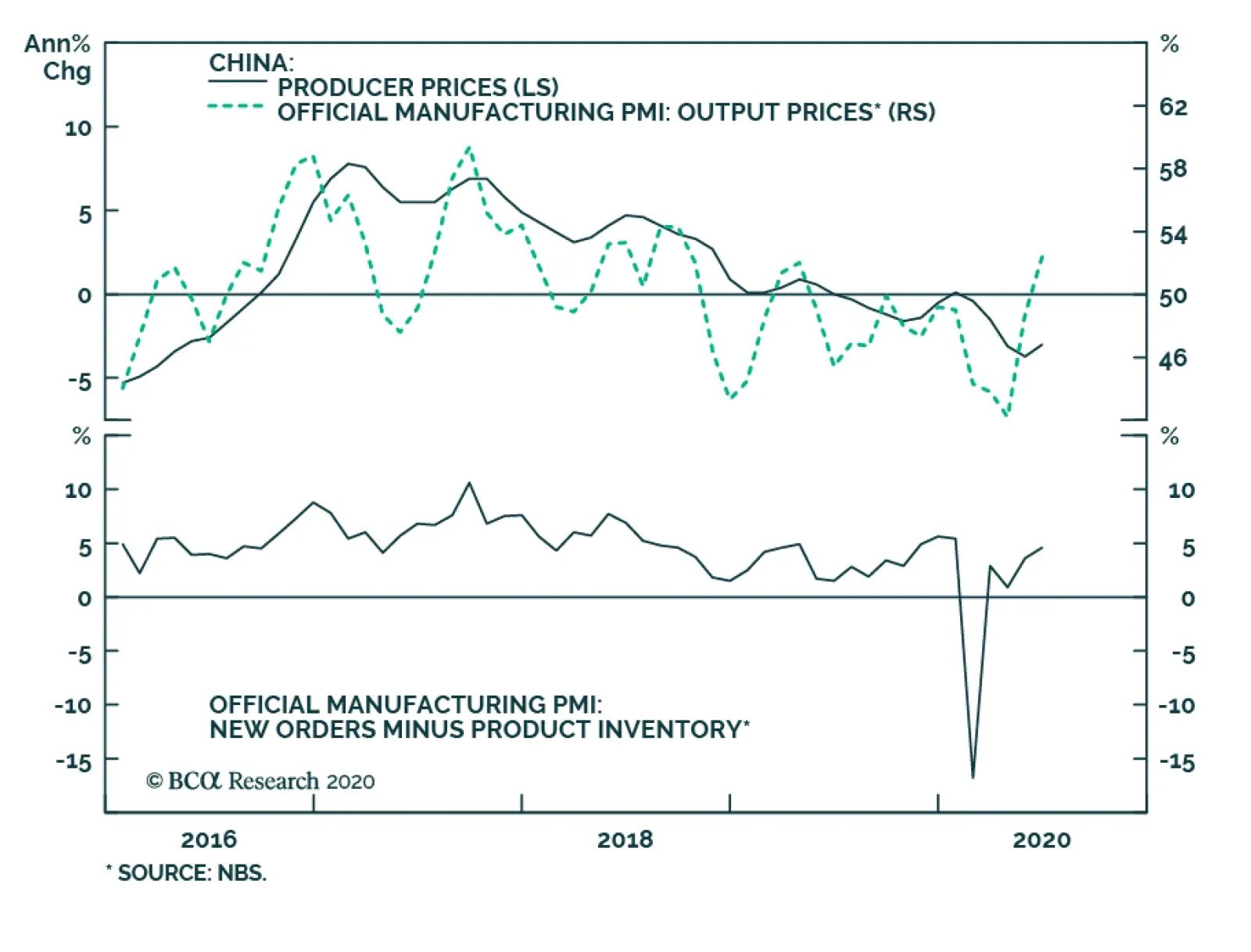 The employment situation in the manufacturing sector has worsened since May, and has returned to contraction following a brief improvement in March and April (Chart 5). An estimated 8.7 million new graduates in 2020,2 a historical high number, will hit the job market in July and August. As such, China’s labor market will likely remain under significant pressure. Even though employment usually lags economic recoveries, depressed expectations on the job market will refrain policymakers from prematurely withdrawing stimulus measures. Small and micro enterprises are an important part of China’s private sector, which provides 80% of jobs in China. The manufacturing PMI of small enterprises fell below the 50 boom-bust line in June, reflecting a persistent weakness in this part of China’s economy. The recent relending and rediscount rate cuts suggest that the PBoC is committed to stay on the easing course. The intensity of monetary easing may start to taper in H2, but the central bank is likely to keep liquidity conditions ample and encourage banks to accelerate lending to the corporate sector. The contraction in Chinese producer prices deepened to -3.7% (year-over-year) in May. However, we think PPI deflation is likely to bottom in Q3. Both the purchasing and producer price subcomponents of the manufacturing PMI ticked up sharply in June, while the drawdown in industrial product inventory relative to new orders has accelerated (Chart 6). The ongoing accommodative policy should provide powerful tailwinds to both economic activity and the PPI in H2. The improvement in the PPI will help to boost industrial profits growth, which turned positive in May (year-over-year) for the first time this year. We expect year-to-date industrial profits to end the calendar year with a modest positive growth rate. Chart 5Labor Market Pressure Intensifies