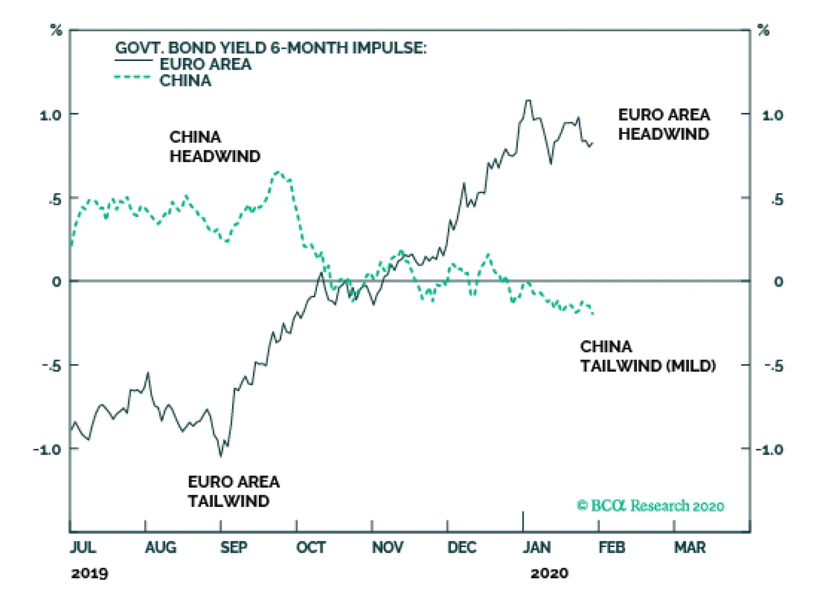 The euro area 6-month bond yield impulse stands near +100 bps, posing the strongest headwind to growth in three years. To make matters worse, the impulse has flipped from a strong -100 bps tailwind last summer into the current strong headwind, equating to a…