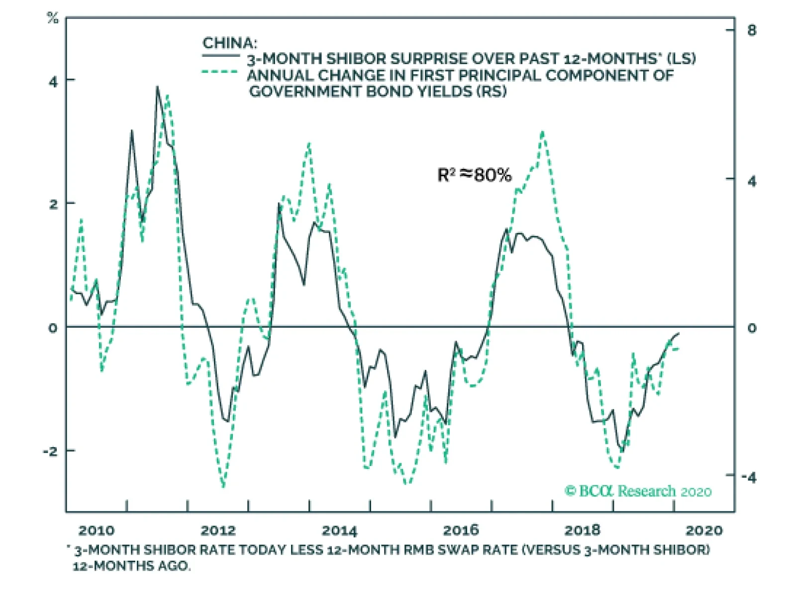 Dear clients, Please note that in next week’s China Macro And Market Review, we will include a section explaining our view on the coronavirus outbreak and its economic as well as financial market implications. We maintain our overweight stance on both Chinese investable and A-share equities, over a tactical (0-3 months) and cyclical (6-12 months) time horizon. Please stay tuned. Jing Sima, China Strategist Highlights BCA’s “Golden Rule of Bond Investing” framework, which links developed economy government bond returns to central bank policy rate “surprises” versus market expectations, also works in China. The relationship between unexpected changes in China’s de facto short-term policy rate and government bond yields has been surprisingly strong over the past decade. Any additional easing by the PBoC this year is likely to be focused on reducing lending rates to the real economy, not interbank rates (which drive government bond yields). As such, yields at the short-end are likely to be flat until later this year at the earliest, whereas yields at the long-end are likely to move modestly higher, at most. The persistent historical gap between economic growth and bond yields in China makes it difficult to forecast the structural outlook for yields using conventional methods. To the extent that Chinese policymakers succeed at shifting the drivers of growth from investment to consumption, we believe that bond yields are more likely to structurally rise than fall. Over the coming 6-12 months, investors should underweight Chinese government bonds versus Chinese equities and onshore corporate bonds. Within a regional government bond portfolio, however, investors should overweight USD-hedged China versus US and developed markets ex-US, as well as in unhedged terms. Feature Last year’s inclusion of Chinese onshore government and policy bank bonds in the Bloomberg Barclays Global Aggregate Index was a significant milestone of China’s journey to internationalize its capital markets. Other bond benchmark providers have since followed suit, highlighting that the trend of increased passive exposure to Chinese assets is likely to continue. Over the past year, the bulk of the market discussion concerning the addition of China to the major bond indices has focused on estimating the size of potential capital inflows that could be triggered and the related impact on onshore bond yields. By contrast, comparatively little work has been done to analyze the core drivers of Chinese government bond yields, and how they compare to the factors that influence yields in the developed markets that dominate the bond indices. This Special Report attempts to fill a hole in the analysis of Chinese bonds. This Special Report attempts to fill that hole in the analysis of Chinese bonds. We look at the predictability of China’s government bond market through the lens of BCA’s “golden rule” framework, and find a surprisingly strong relationship between changes in China’s de facto short-term policy rate and government bond yields. We then present our cyclical (6-12 month) and secular outlooks for government yields given this relationship, and conclude by presenting four specific investment recommendations pertaining to China’s fixed-income market with two audiences in mind: mainland/onshore investors who are focused on returns in unhedged RMB terms, and global fixed-income investors who are primarily focused on hedged US-dollar regional bond exposure. The Golden Rule Of Bond Investing, With Chinese Characteristics In a July 2018 Special Report,1 BCA’s Chief US Bond Strategist, Ryan Swift, elegantly distilled the cyclical US government bond call into a simple question: During the next 12-months, will the Federal Reserve move interest rates by more or less than what is currently priced into the market? Chart 1The (US) Golden Rule Of Bond Investing In Practice