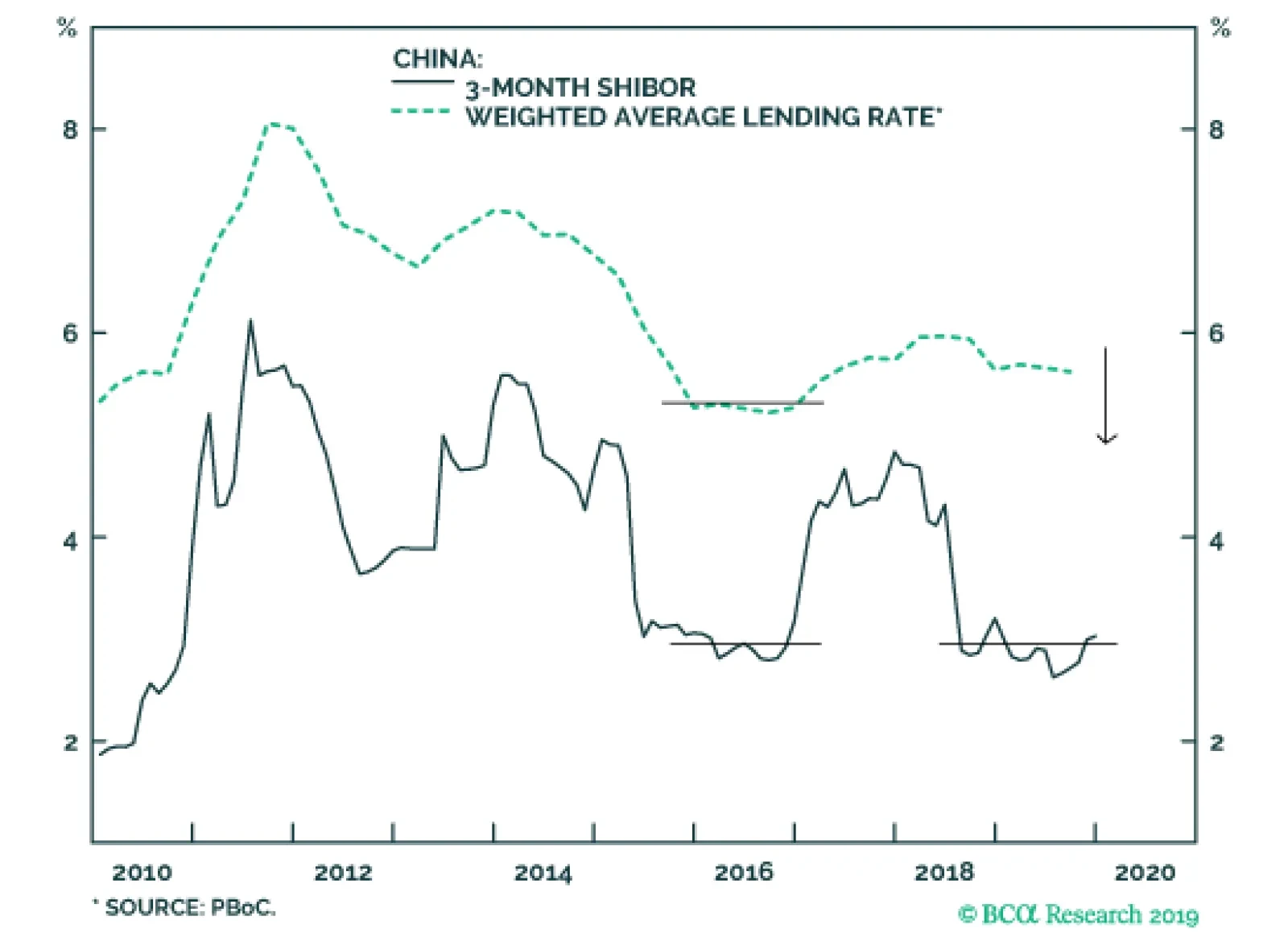 The ECB resumed its QE program in November after a 10-month hiatus. While the current pace of €20 billion in monthly asset purchases is well below the prior pace of €80 billion, the central bank did say it would continue buying assets for “as long as necessary” to bring inflation up to its target. The language harkens back to Mario Draghi’s 2012 “whatever it takes” pledge, this time applied to the ECB’s inflation mandate. Not to be outdone, the People’s Bank of China cut the reserve requirement ratio by 50 basis points last week, a move that will release RMB 800 billion ($US 115 billion) of fresh liquidity into the banking system. Historically, cuts in reserve requirements have led to faster credit growth and ultimately, to stronger economic growth both in China and abroad (Chart 10). The PBOC has also instructed lenders to adopt the Loan Prime Rate (LPR) as the new benchmark lending rate. The LPR currently sits 20bps below the old benchmark rate (Chart 11). Hence, the PBOC’s order amounts to a stealth rate cut. Our China strategists expect further reductions in the LPR over the next six months. In addition, the crackdown on shadow bank lending seems to be subsiding, which bodes well for overall credit growth later this year (Chart 12). Chart 11China: Stealth Monetary Easing