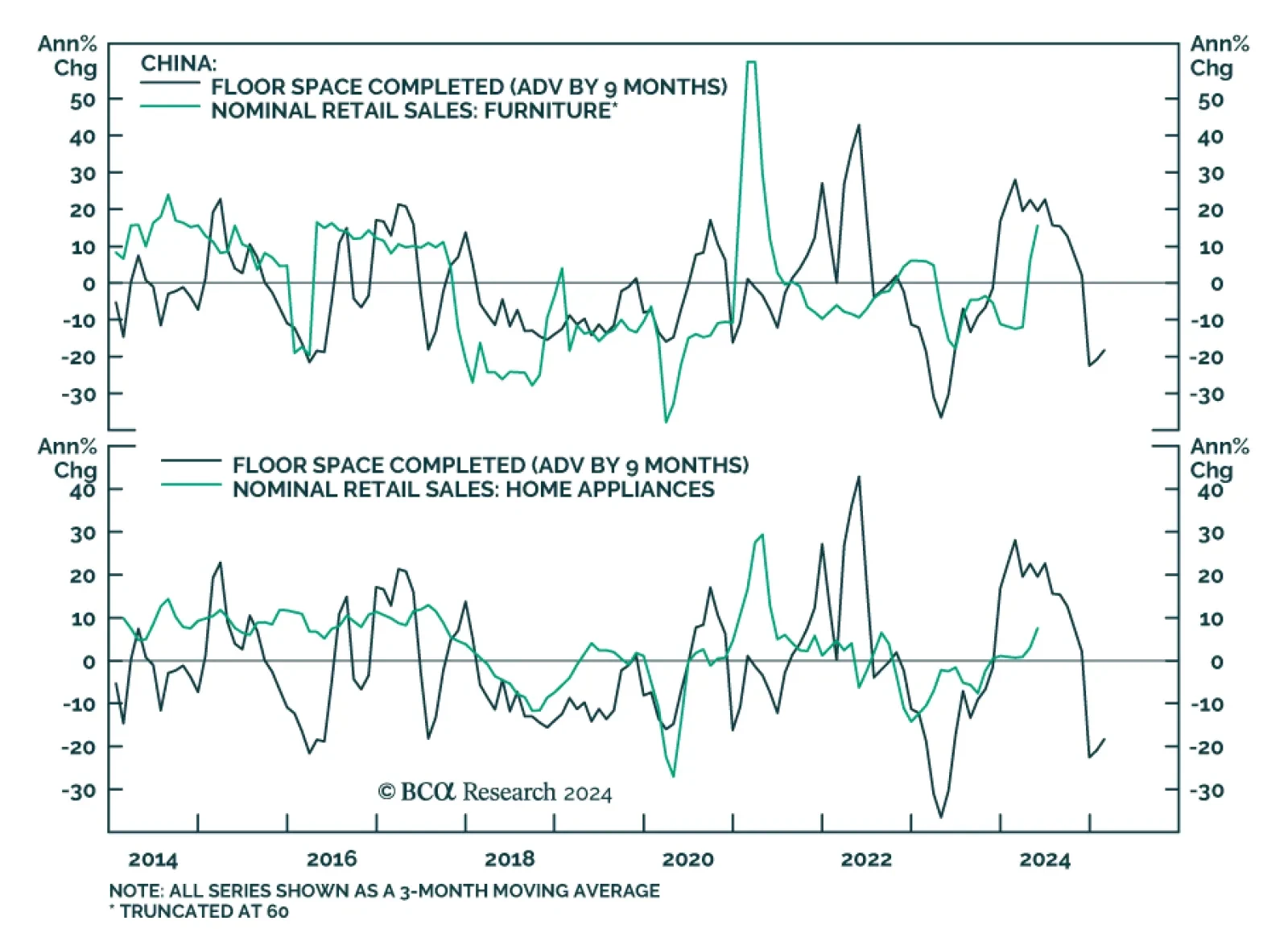 Chinese retail sales grew 3.7% y/y in May, from 2.3% in April, upending expectations of a more muted 3.0% increase. The government appliance trade-in program has likely boosted these figures. Sales of home-related goods such…