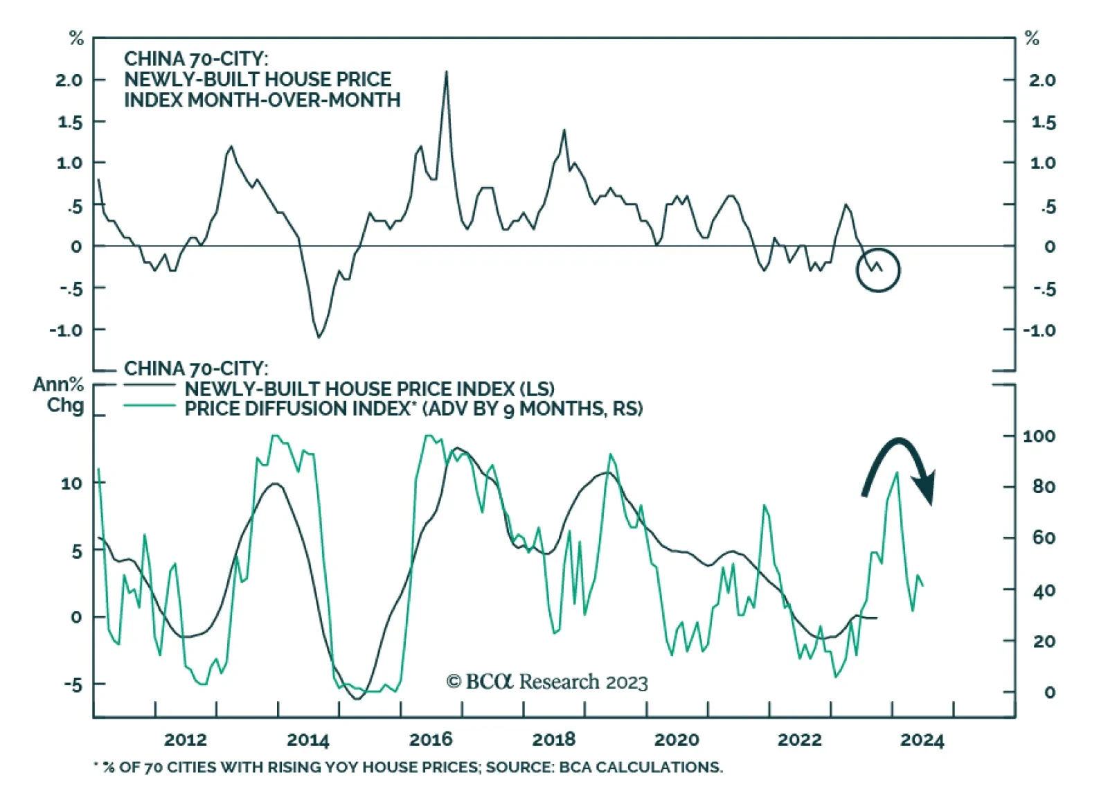 The latest house price data indicate that China's housing market remains weak. The prices of newly built homes across 70 medium and large Chinese cities declined by 0.4% m/m in October – a faster pace of decline than…