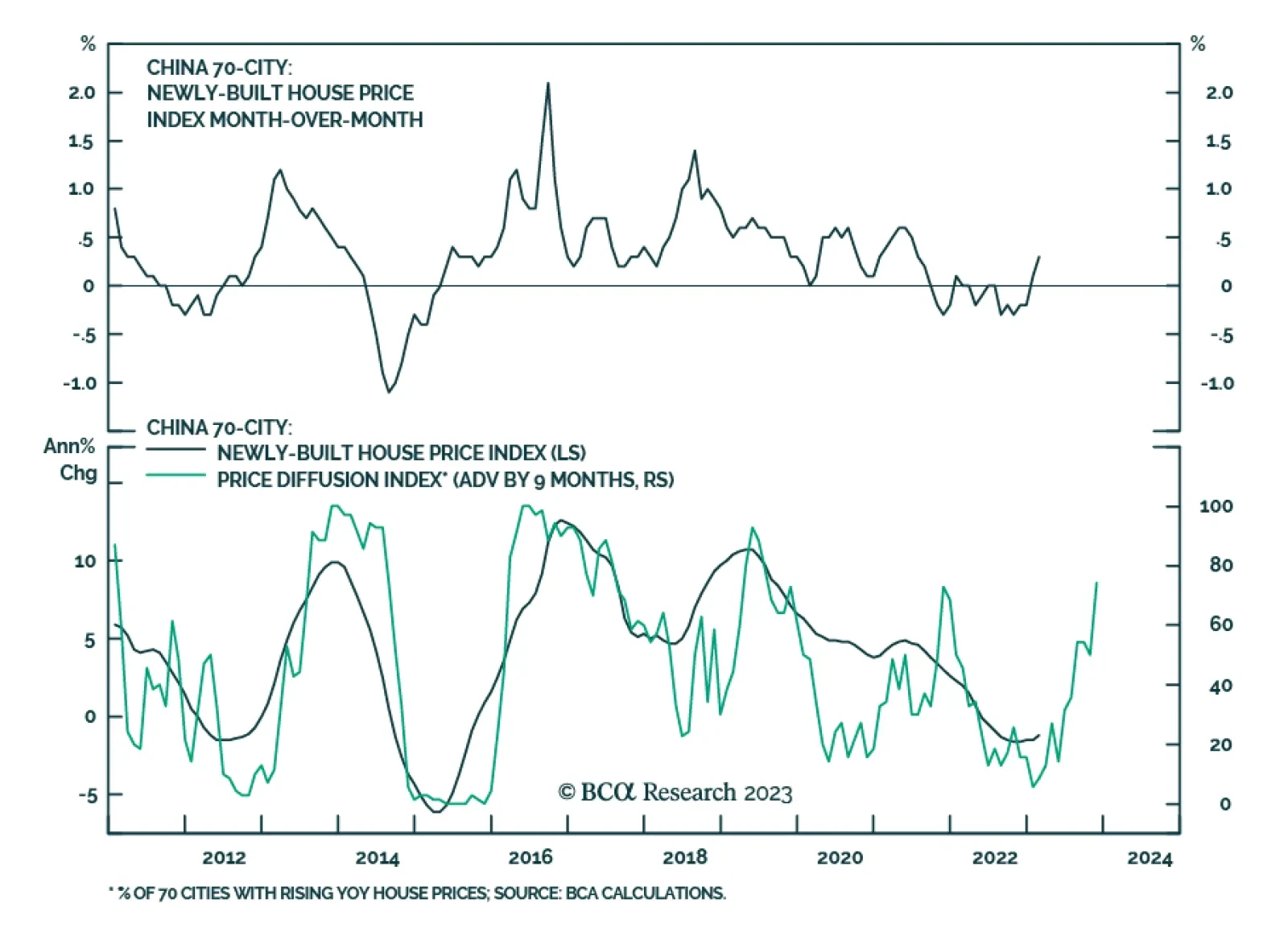 The 70-city average price of a new house in China ticked up by 0.3% m/m in February, registering the first monthly increase since August 2021. Notably, this trend is broad-based across Chinese cities with new house prices rising…