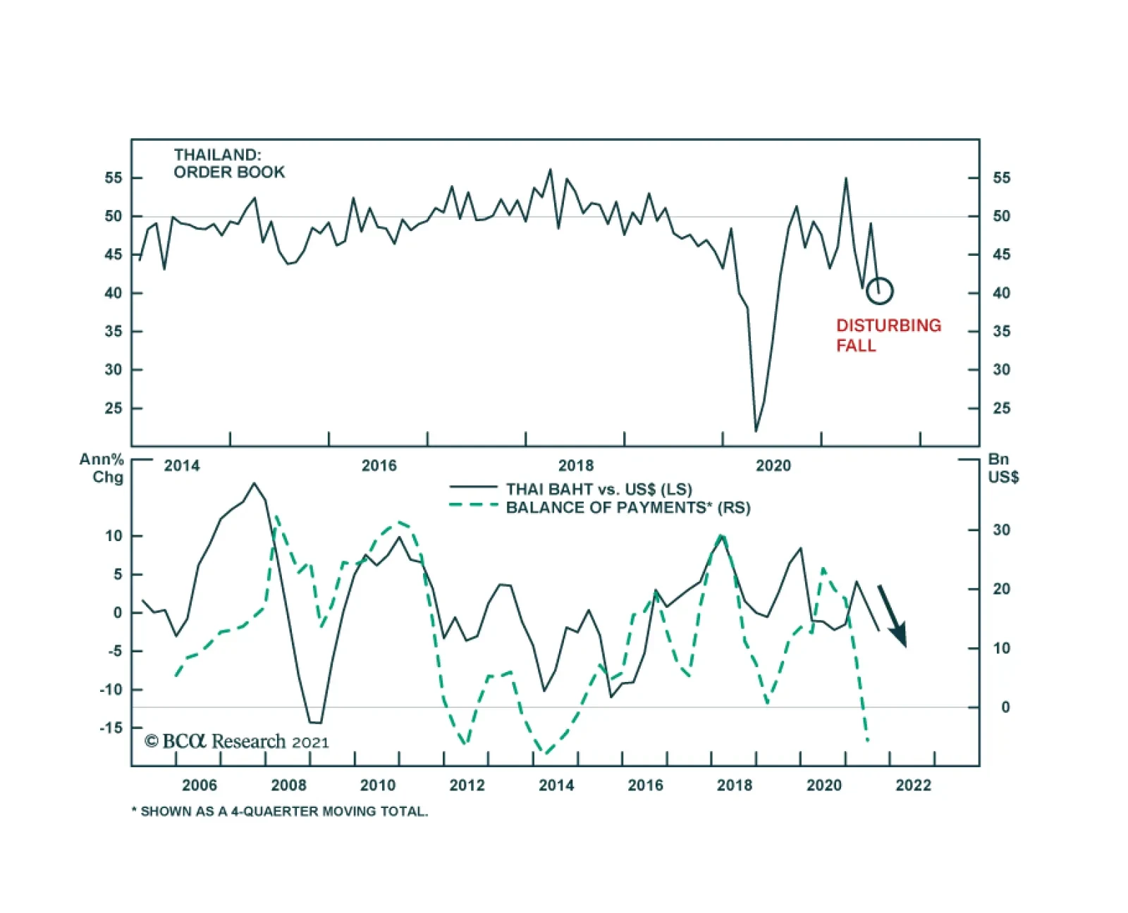 The domestic and external outlook remains bleak for Thailand. BCA Research’s Emerging Markets strategists recently highlighted that Thai demand relapsed even before the latest surge in COVID-19 infections. Weak demand means…