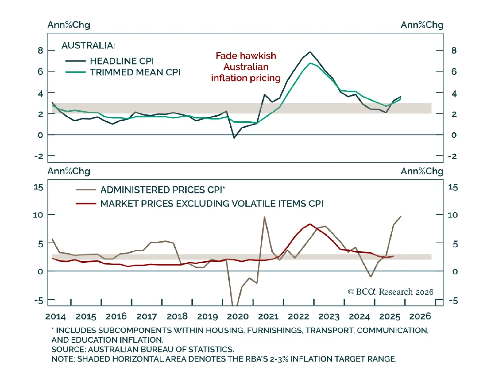 Stay long Australian 10-year government bond futures and underweight inflation-linked bonds as market expectations are overly hawkish. Australian Q4 inflation printed hotter than expected, with trimmed-mean inflation rising to 3.2%. Inflation is now back…