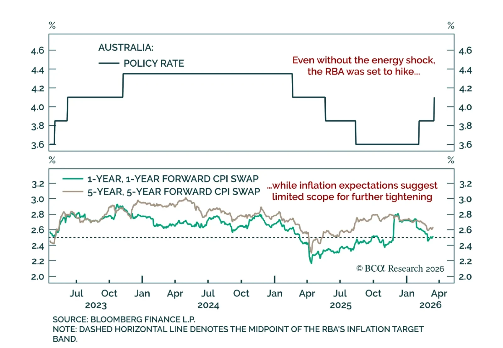 The RBA delivered a second rate hike this year, but markets may be overpricing further tightening. The RBA raised the policy rate by 25 bps to 4.1%, in line with expectations. Tightening was anticipated regardless of the energy shock. The vote was split 5-4,…