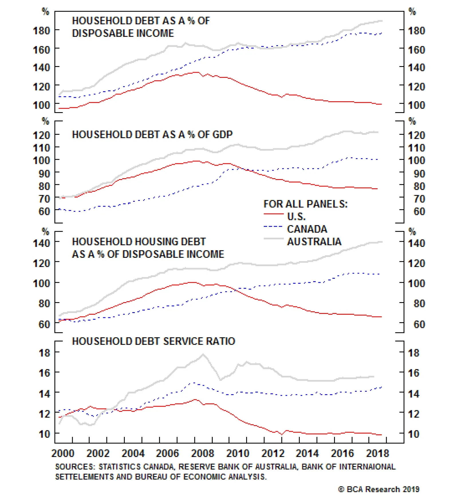 Few would care about the systemic risk created by elevated house prices if debt loads were small. However, in both countries, household indebtedness makes Americans circa 2007 look like a frugal bunch. In Canada, household debt…