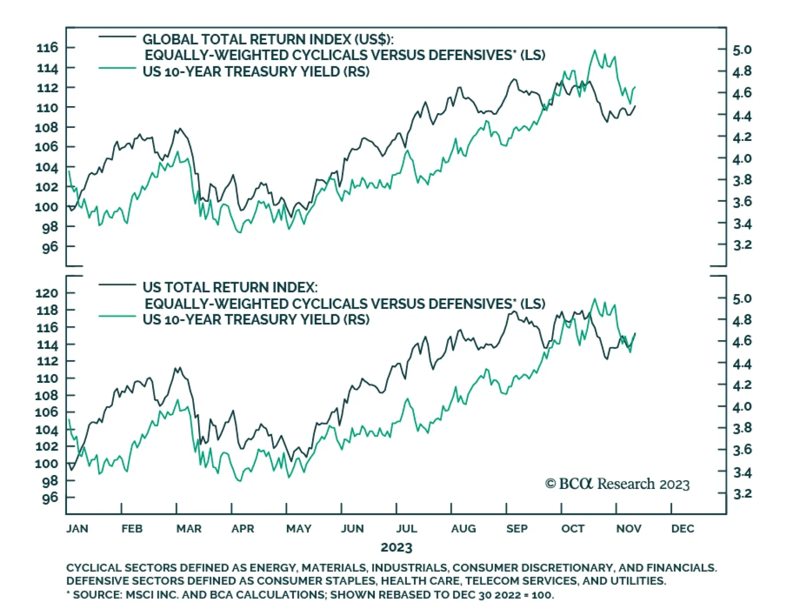 Our equally weighted global cyclical equity index has outperformed equally weighted defensives for most of this year. By October 17, this outperformance stood at about 12.6%. This outperformance is consistent with US Treasury…