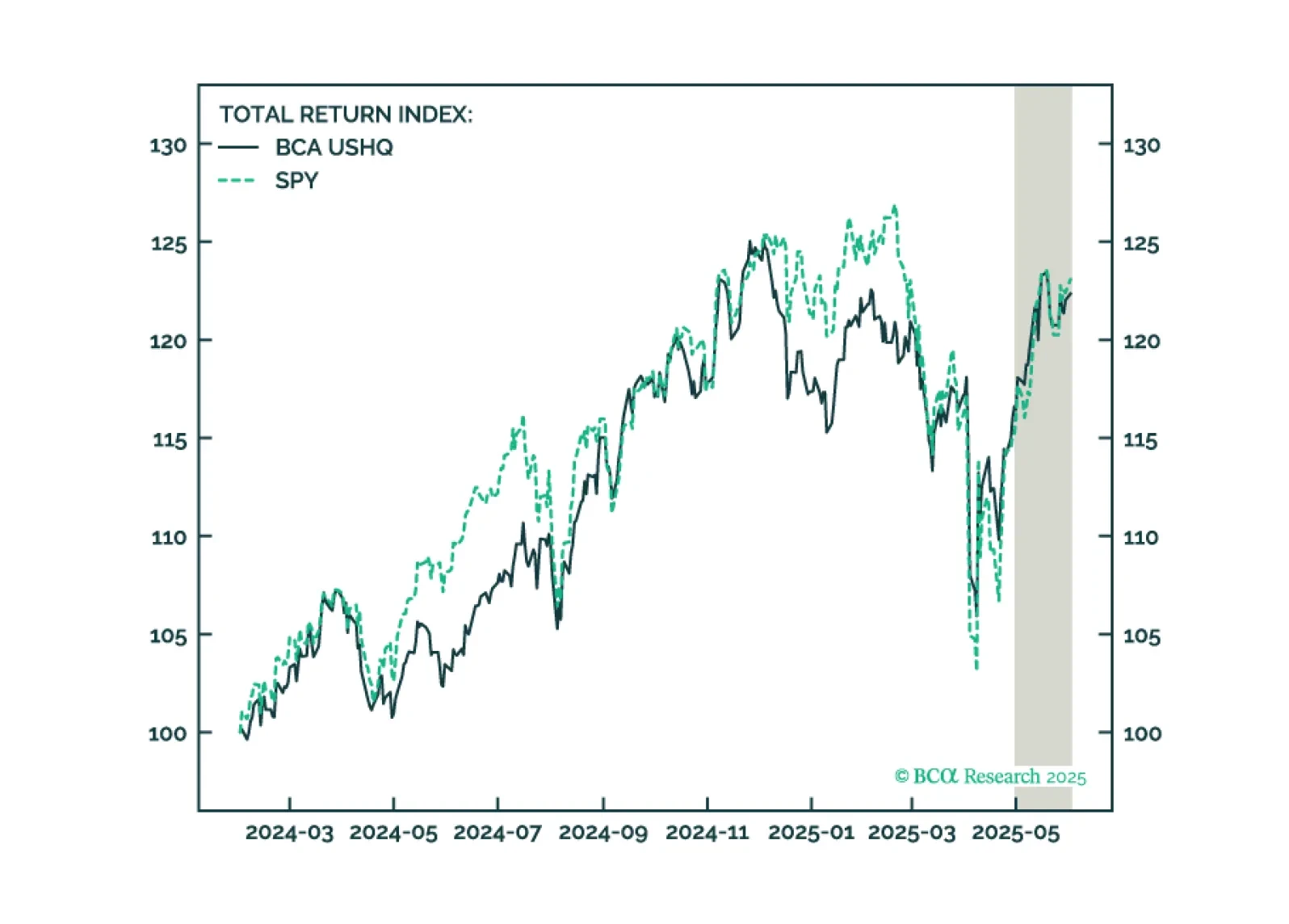 The US High Quality (USHQ) portfolio underperformed its benchmark through May, returning 5.1%, whilst its SPY benchmark returned 6.1%. On a trailing three-month basis, performance is also slightly weaker vs. benchmark, with USHQ…