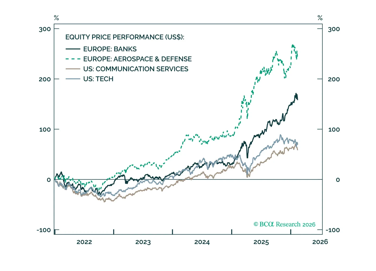 The near-term outlook is less supportive for European banks and defense equities. We downgrade banks to neutral and continue to expect defense stocks to trade in a “sell the rumor, buy the news” pattern.