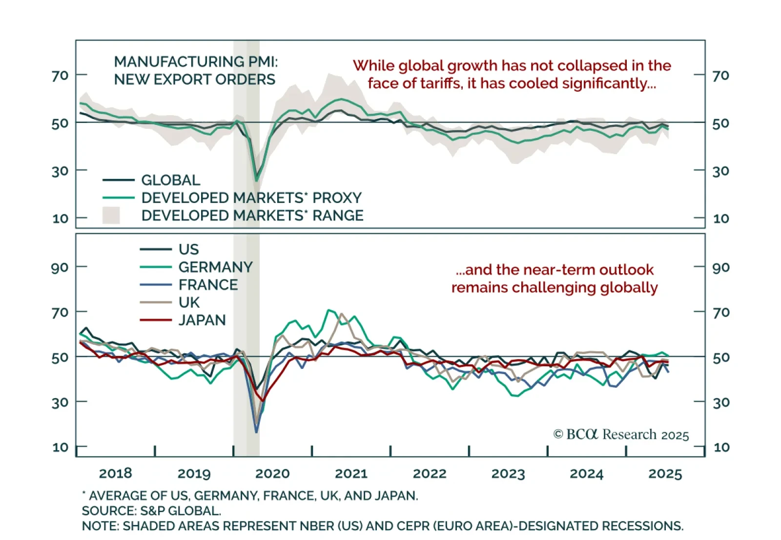 In response to trade uncertainty, global growth is cooling but not collapsing, supporting a cautious near-term view on risk assets. Trade disruption earlier this year raised fears of a global recession, but the data so far point…