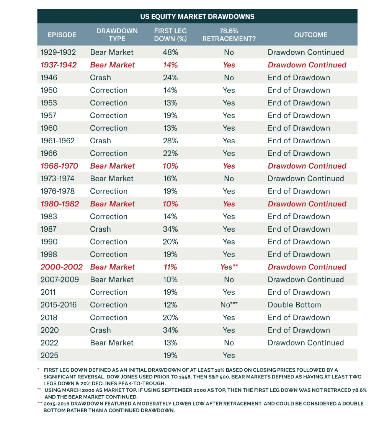 Despite a strong rebound in equities, we remain defensively positioned as recession risks persist and market history warns against premature optimism. The S&P 500 has retraced 78.6% of its initial drawdown, a level that typically…