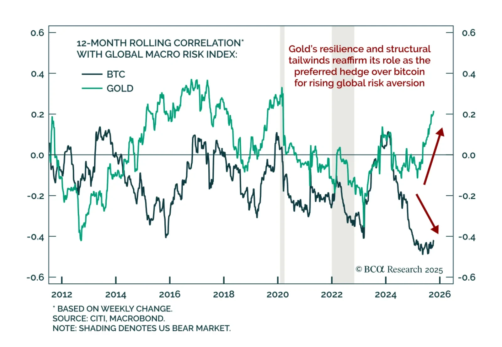 Gold remains a superior hedge asset to bitcoin during global risk-off periods. Both assets have rallied strongly this year, reaching new all-time highs as beneficiaries of the dubbed “debasement trade,” reflecting investor…