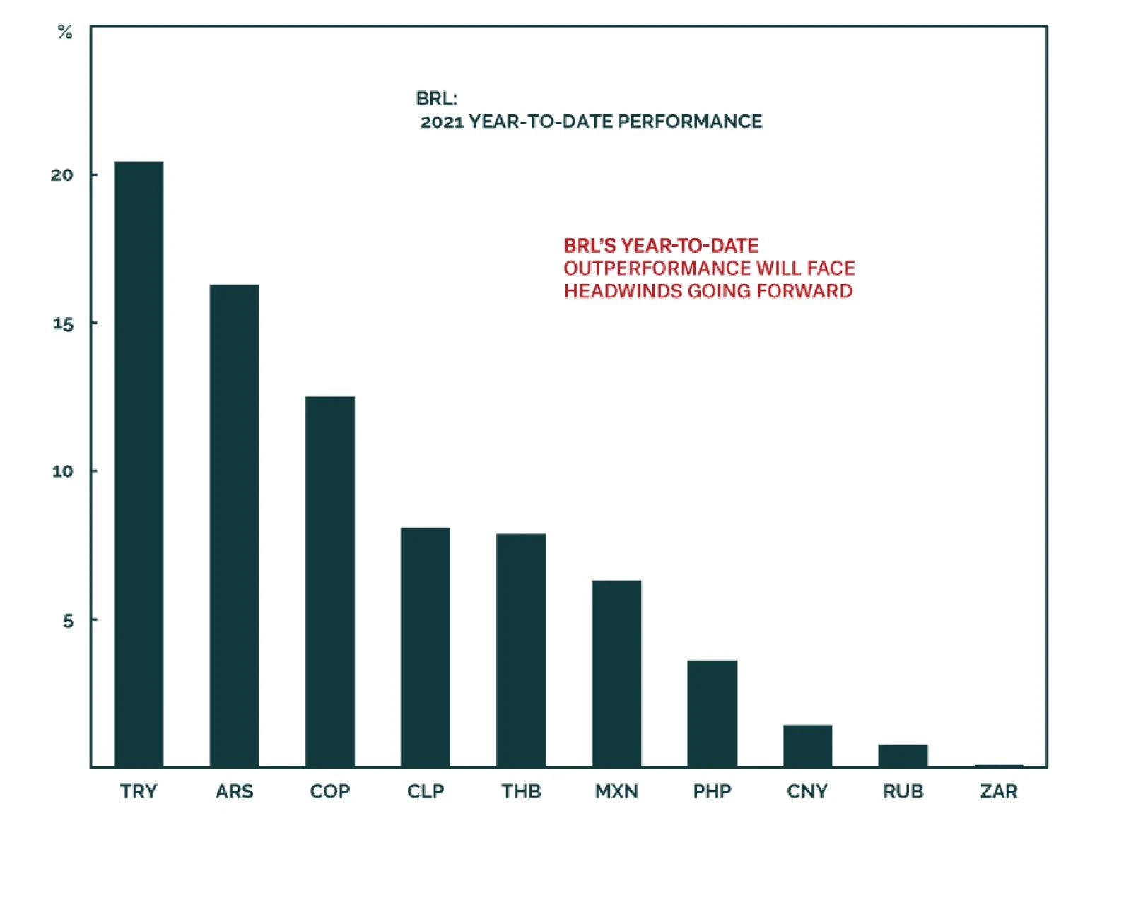 The Brazilian real was up 1.4% versus the dollar on Thursday – a day of broad dollar strength. The gain comes on the back of the Central Bank of Brazil’s decision to hike rates by 75 bps for the third consecutive time…
