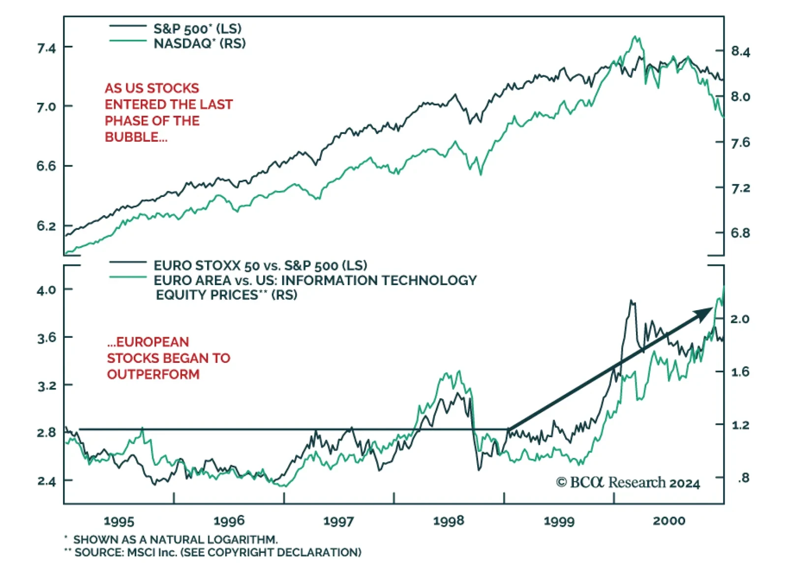 Signs that we are entering the last phase of a bubble are building up. Can European equities benefit from a new tech mania?