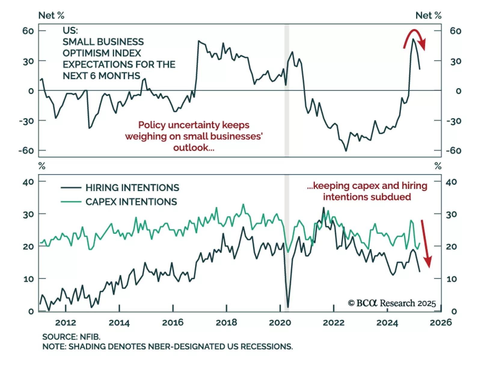The sharp drop in March’s NFIB survey reinforces our defensive asset allocation, as small business sentiment weakens amid rising policy uncertainty. We remain overweight government bonds and underweight risk assets, while tactically…