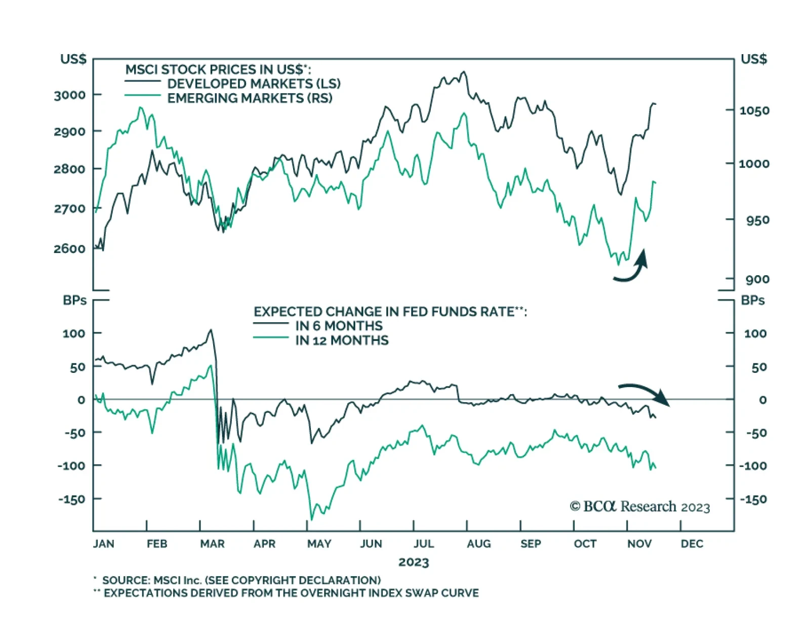 Global market sentiment has improved notably since late-October. In the equity space, DM and EM stocks have gained 8.5% and 7.8% respectively since October 26. Regarding currencies, the counter-cyclical DXY index has lost 2.2% so…