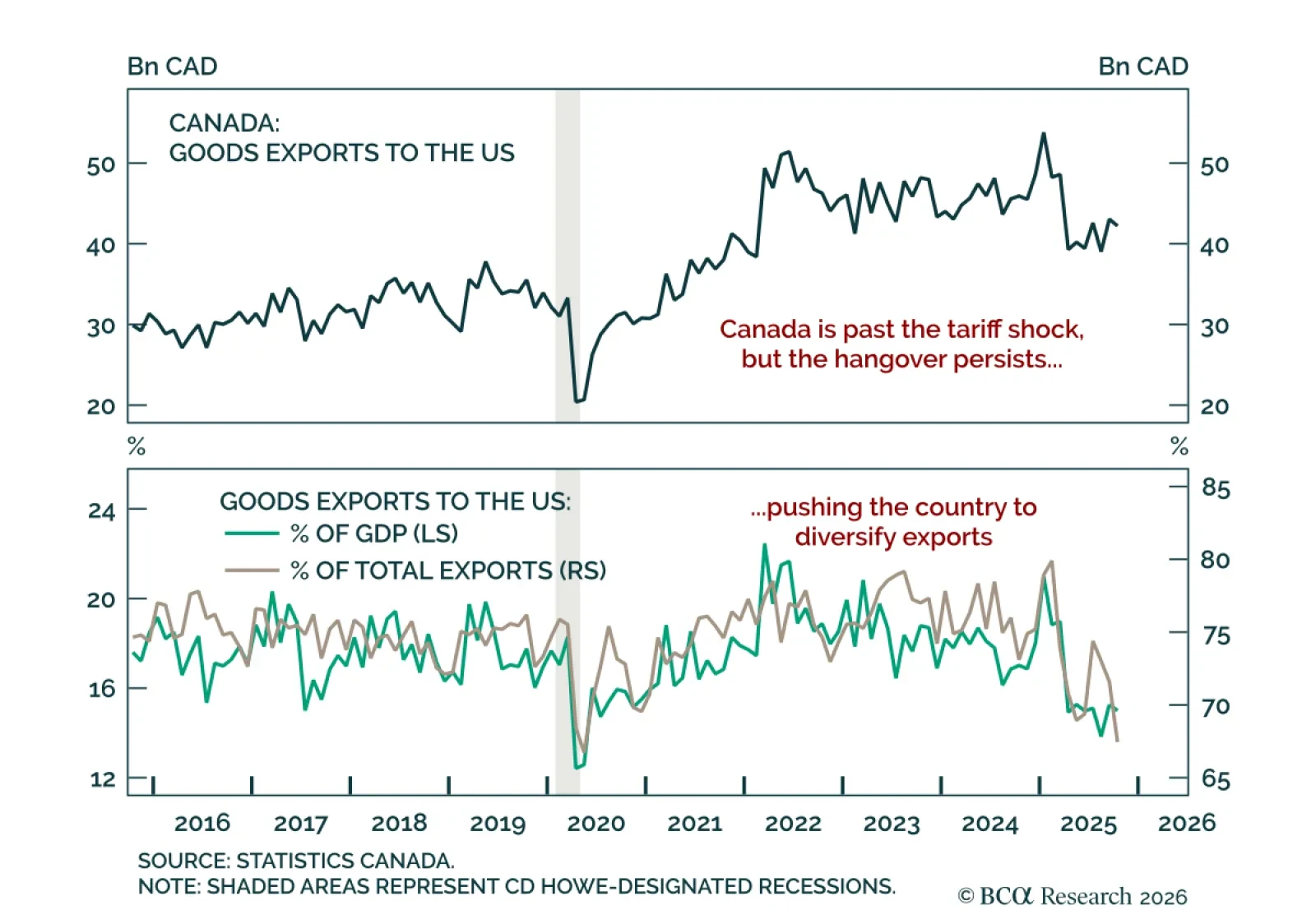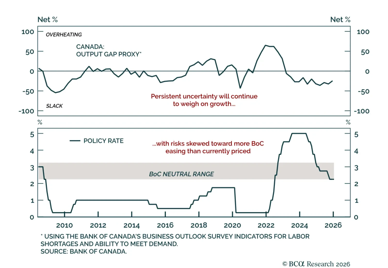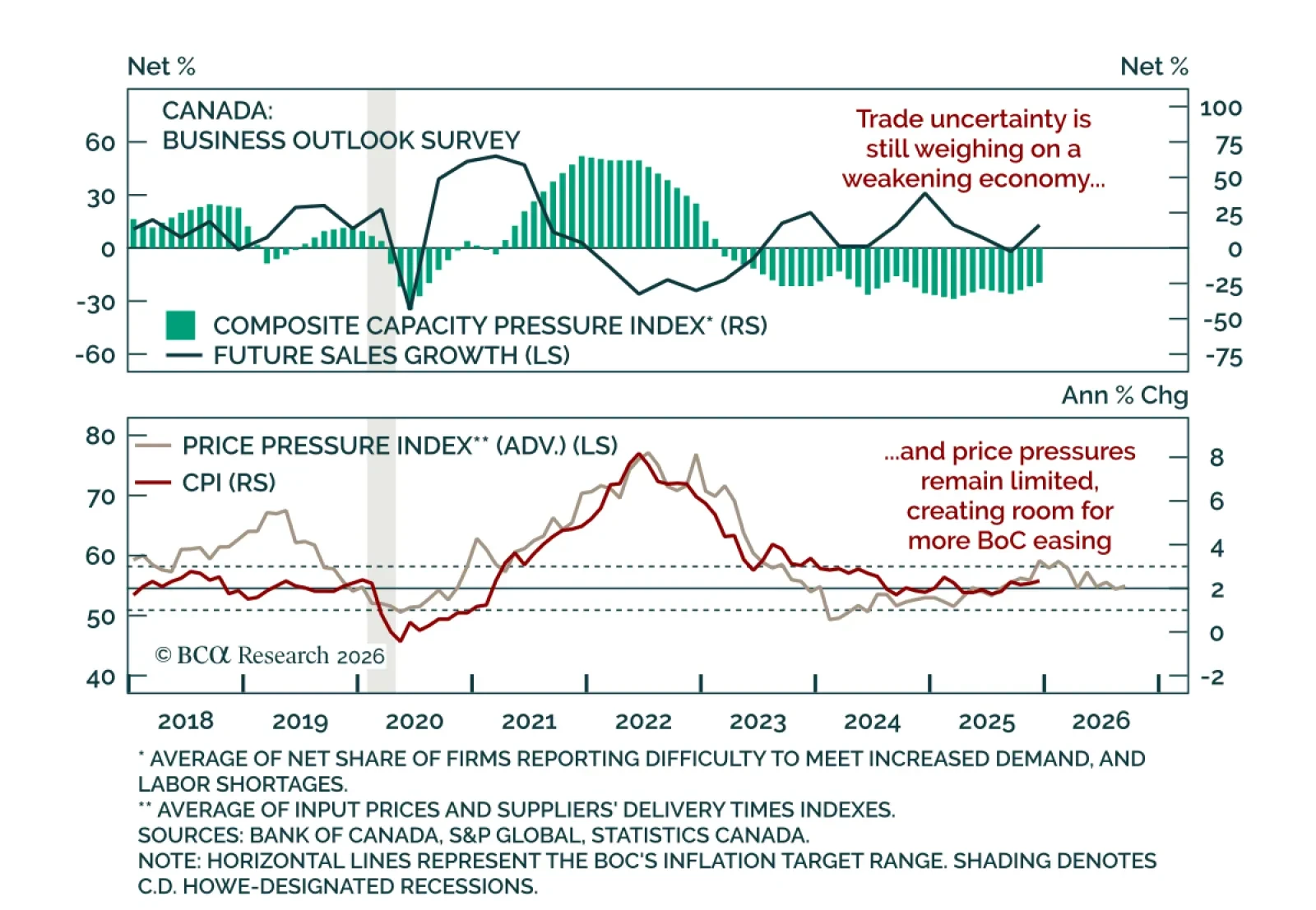 Downside risks dominate the Canadian outlook despite stabilization and a BoC pause. The Bank of Canada held the overnight rate at 2.25% for a second consecutive meeting, as expected. After cutting from 3.5% in early 2025, the BoC signaled at its October…
