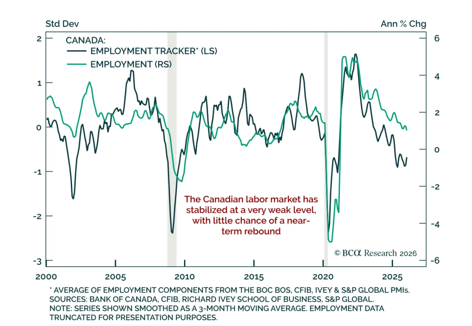 Downside risks dominate Canada’s outlook, supporting further BoC easing and CAD steepeners. Canada’s employment data show an intriguing divergence. The widely followed Labour Force Survey (LFS) has stabilized, but its volatility and frequent revisions make it…