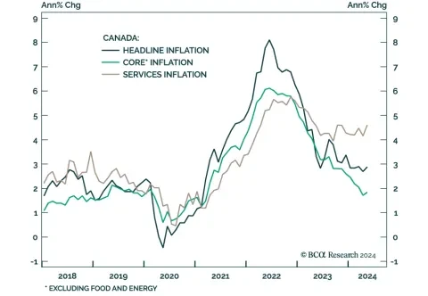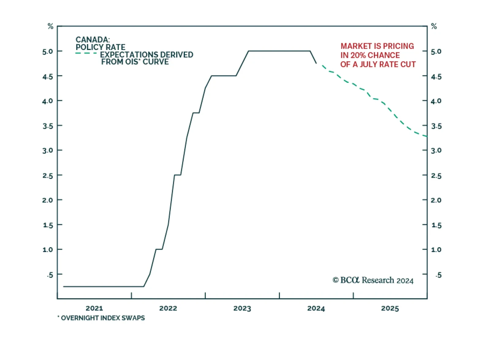According to BCA Research’s Global Investment Strategy service, the BoC should have sufficient evidence of Canadian disinflation to cut rates this summer. The market is pricing in a similar amount of rate cuts for the BoC…