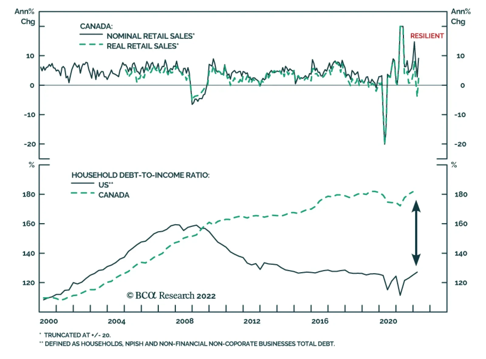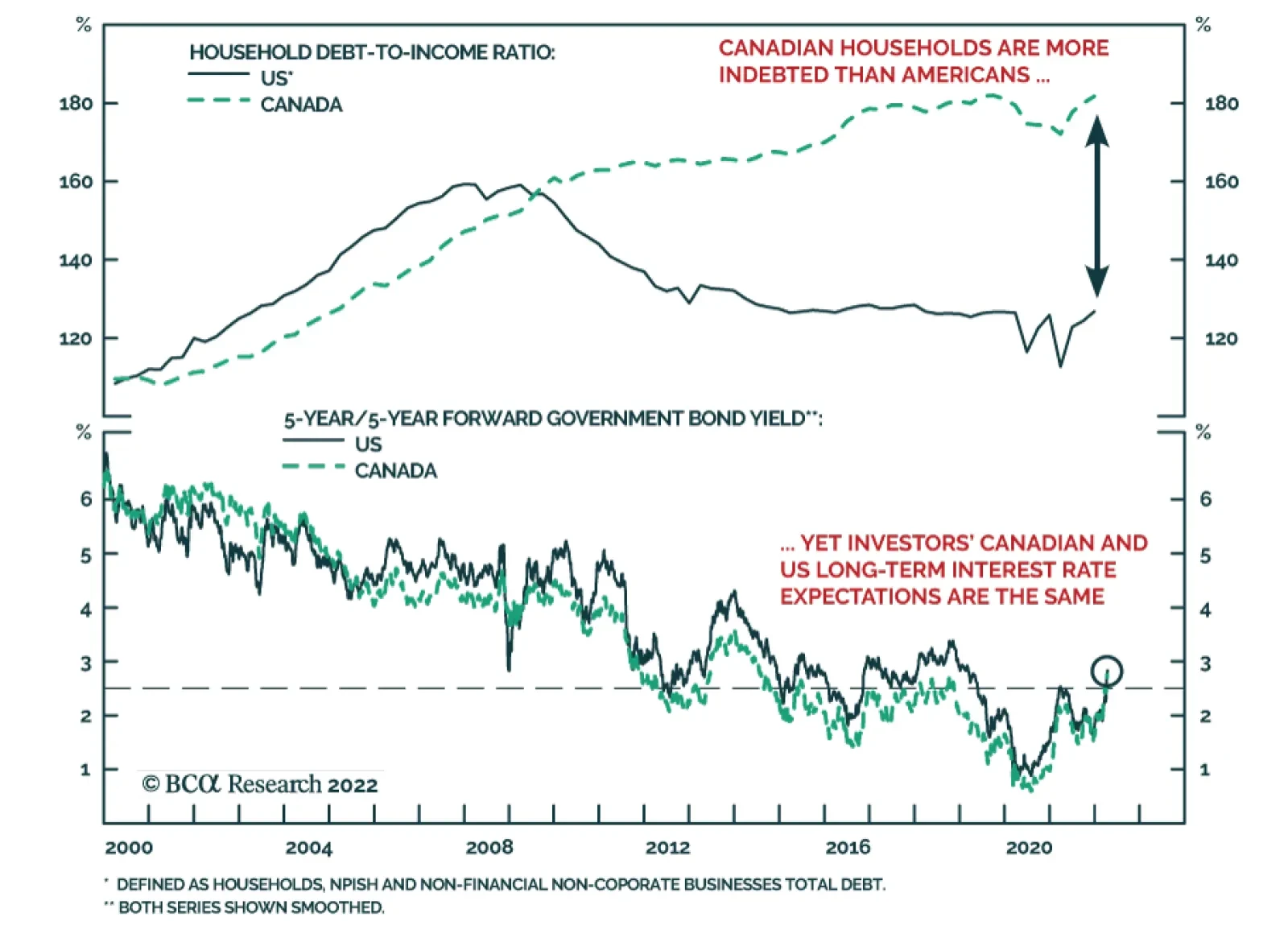 While we expect low housing inventory to mute the negative impact of rising mortgage rates on the US housing sector (see The Numbers), the same cannot be said for Canada. Canadian households’ debt to income ratio is…