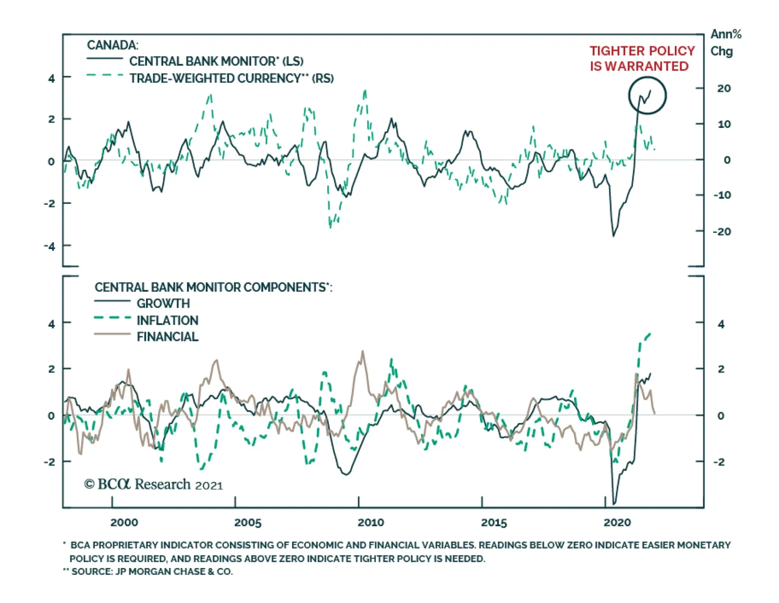 Highlights Bank of Canada: Rising inflation, high capacity utilization, and monetary policy constraints will force the Bank of Canada to taper further and move up the timing of its first rate hike to H1/2022. Stay underweight Canadian…