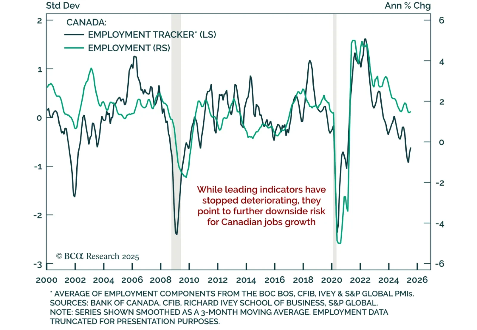 Recent Canadian data confirm slowing growth, reinforcing support for government bonds and steepeners. The October CFIB Business Barometer fell to 46.3 from 50.2, indicating contraction and underscoring the risk posed by small…