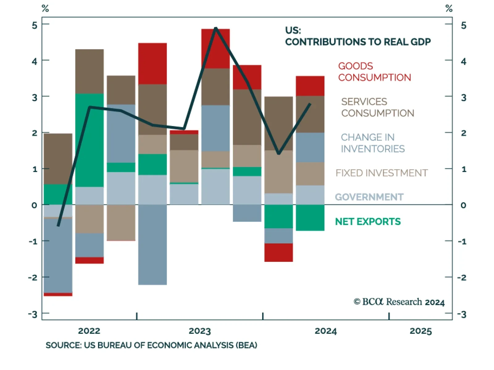 The preliminary release of Q2 2024 US GDP surprised to the upside on Thursday. The US economy grew 2.8% on an annualized basis, and 3.1% on a year-over-year basis. The two largest drivers of the acceleration were consumption (…