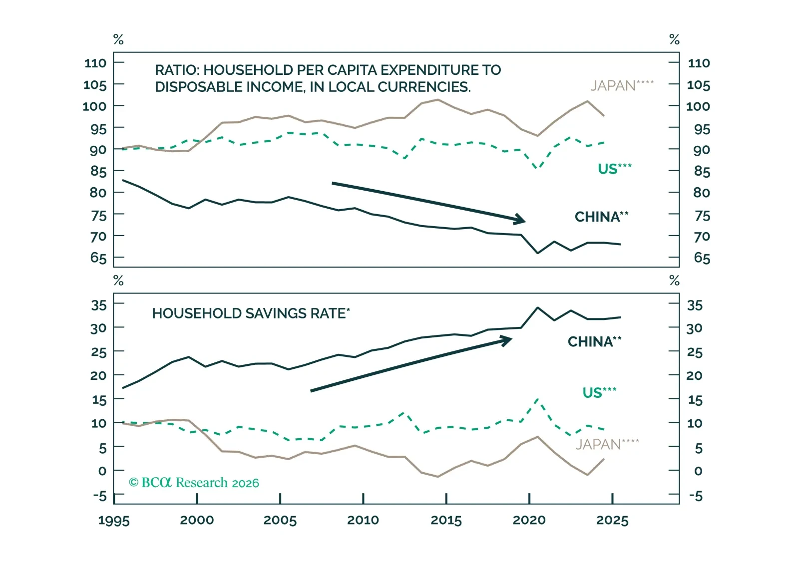 Risk assets in EM/China and cyclical commodities will sell off in H1 2026. A shift toward aggressive policy stimulus in China and a clear improvement in global manufacturing are needed to produce durable rallies in EM/China risk assets and the prices of energy and industrial metals.
