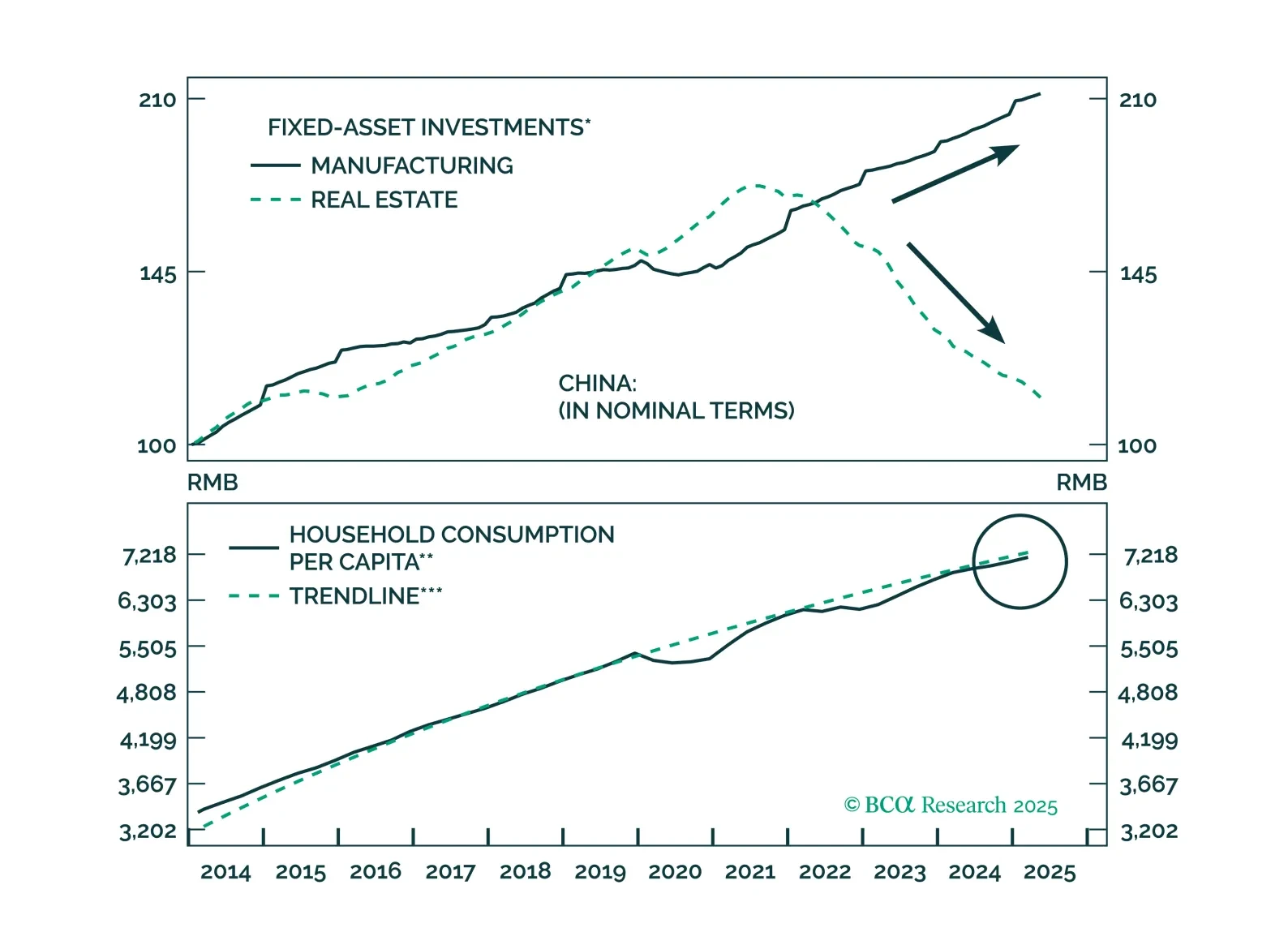 This report analyzes China’s persistent deflation, which is rooted in supply-side forces. Consumption support will be slow and incremental, keeping deflationary pressures elevated for the next 6–12 months.