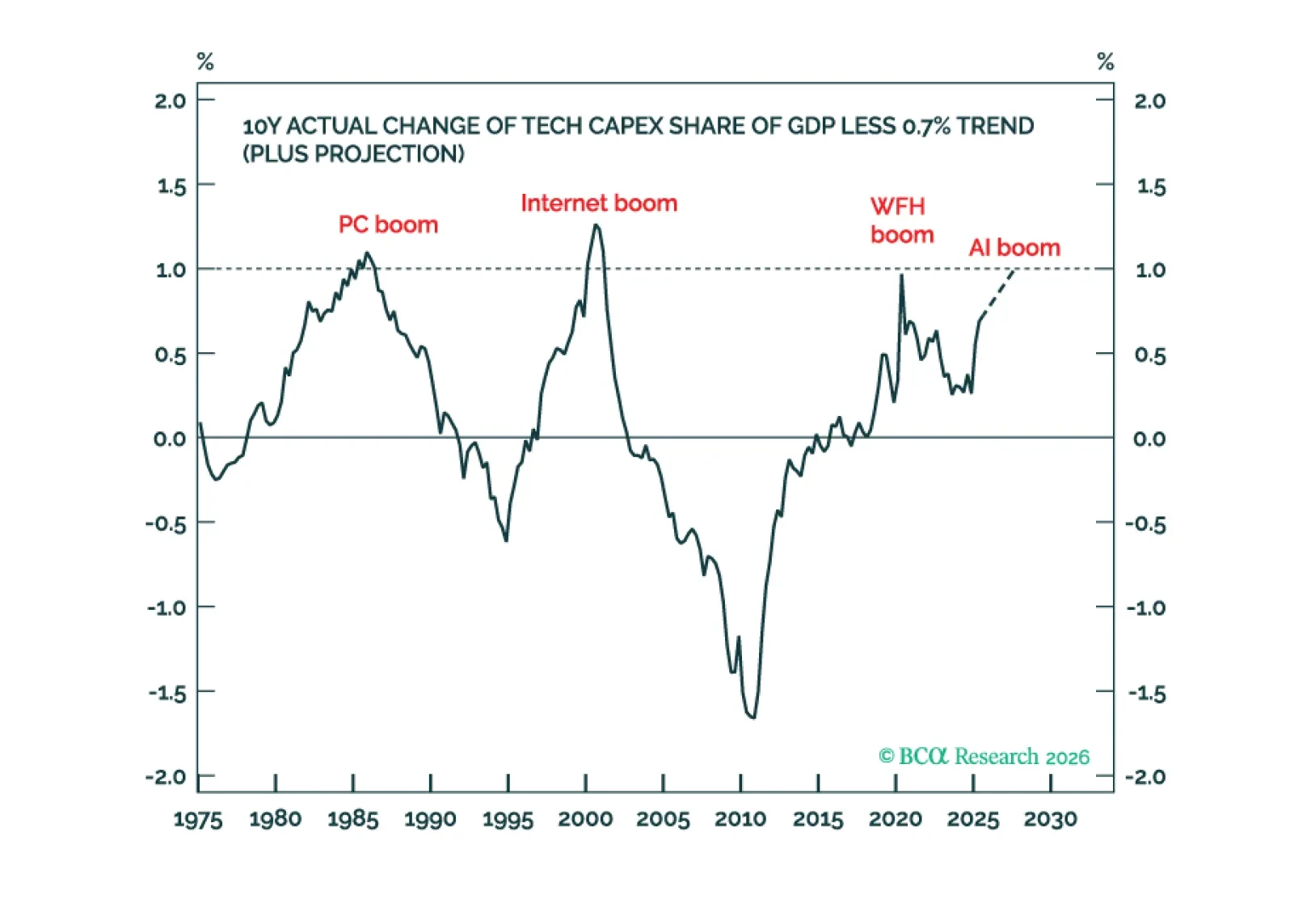 Much like the 2000 episode, we expect this year to unfold in two stages: A “Great Rotation” from tech stocks to non-tech names in the first half of 2026 followed by a broad-based selloff in stocks in the second half on the back of a weakening US economy.