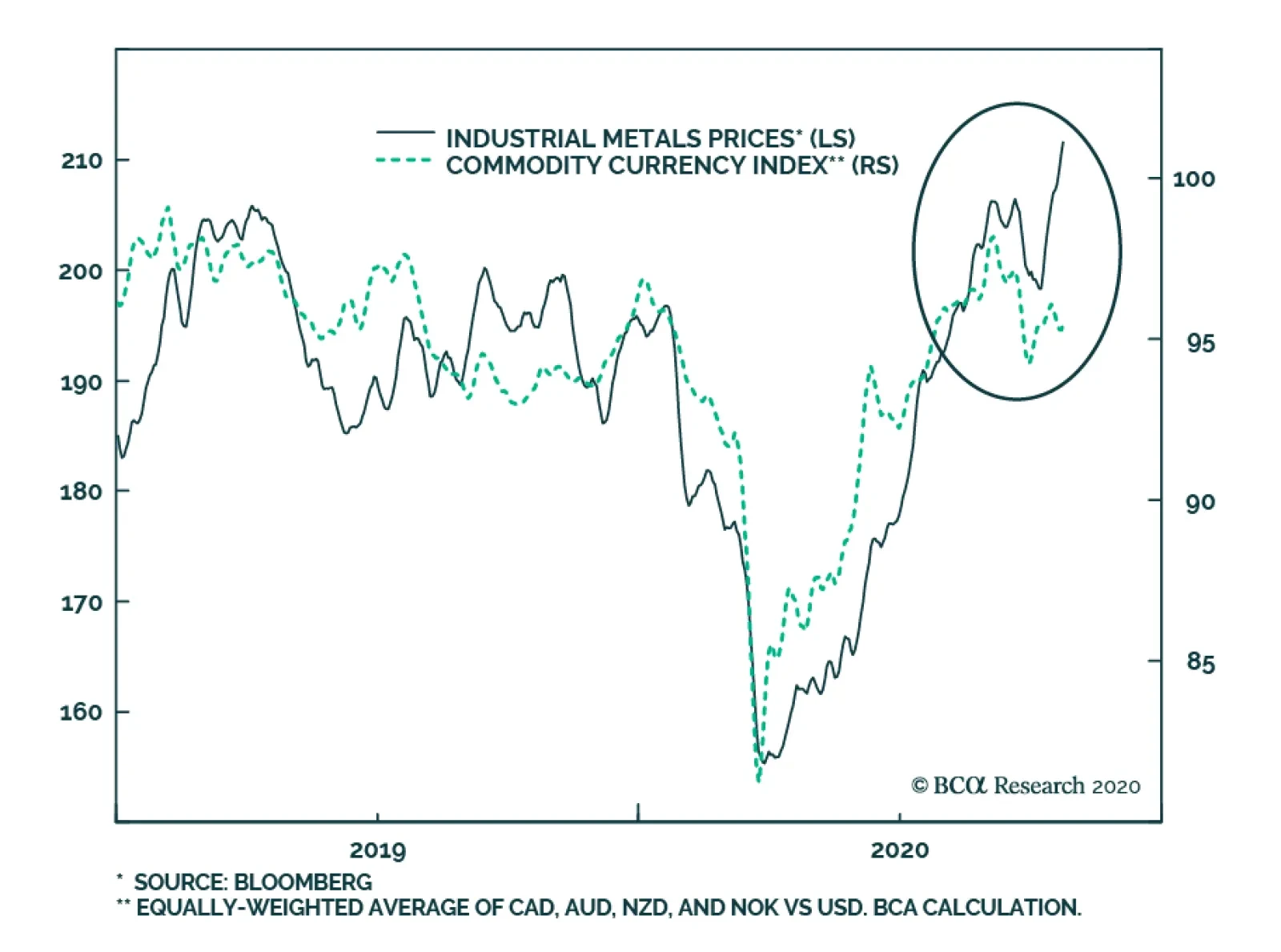 Industrial metals prices have risen 35% since their late-March low. They sold off roughly 4% in September in lockstep with global risky asset prices, but have since risen to a new high for the year and are back to mid-2018 levels. The chart above suggests…
