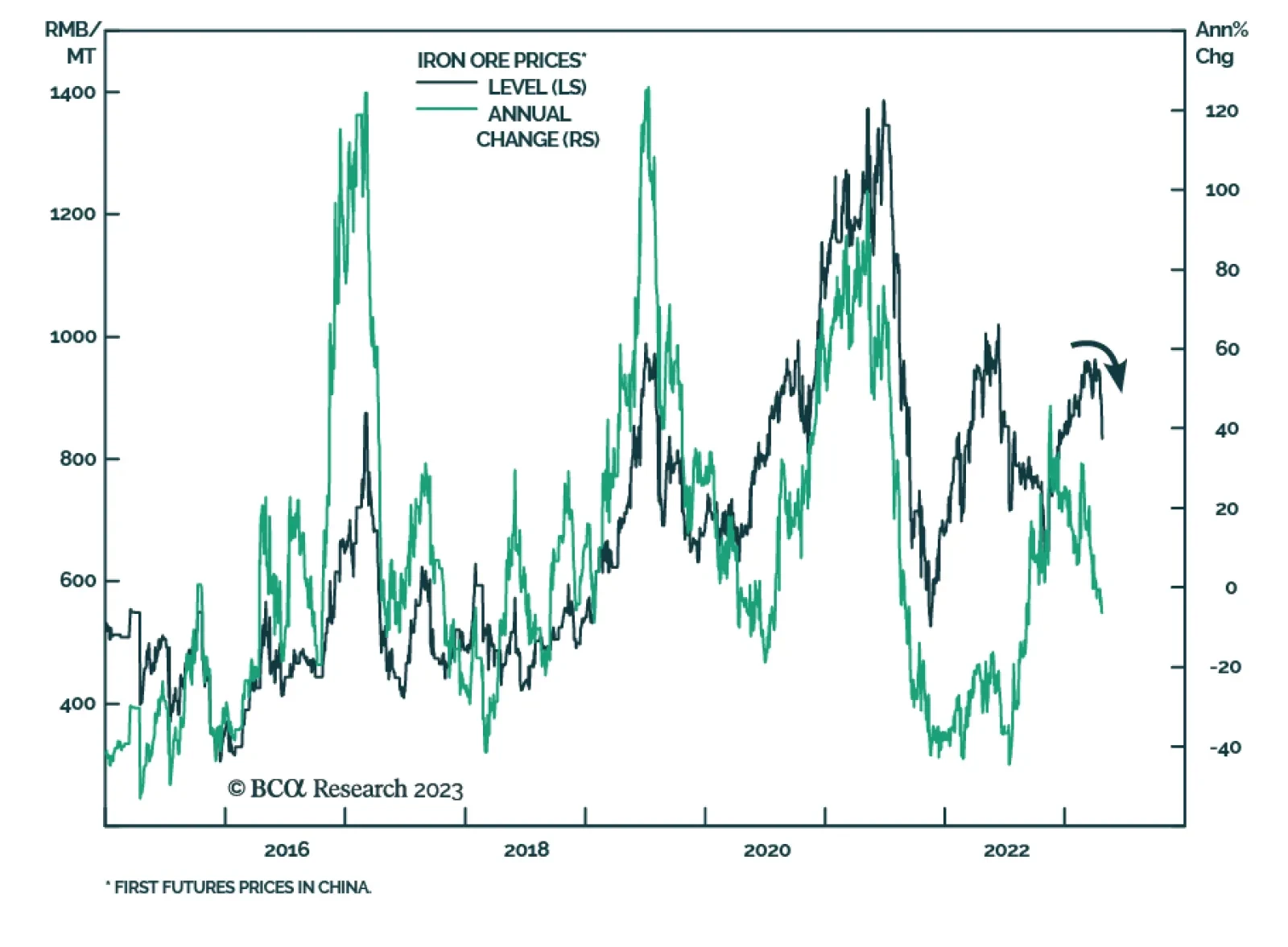 Fertilizer prices will continue to move lower as the natgas price shock touched off by the Russian invasion of Ukraine dissipates. As a result, we expect grain prices to soften another 10% this year. Food-price inflation will move lower over the course of the year as grain prices weaken, provided a weather- or geopolitical shock does not once again send natgas prices higher.