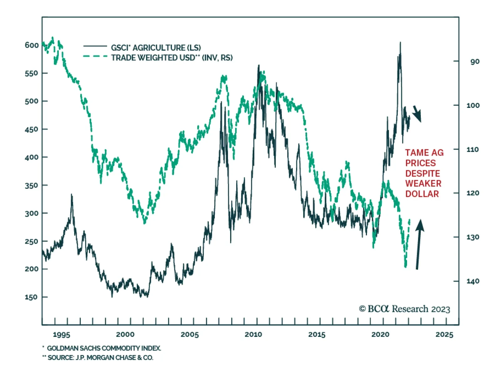 The tempo of China’s and the US’s military operations is picking up sharply. The risk of a sudden, perhaps unintended, escalation of military conflict, therefore, is rising in the South China Sea. So is the risk of another shooting war in the Middle East. Against this backdrop, China’s reopening, marginally stronger GDP growth, and massive fiscal stimulus to support renewables and defense is being rolled out. In states with high debt-to-GDP ratios like the EU and US, the risk of fiscal dominance is rising, and with it higher inflation. We remain long the XOP oil and gas ETF; the XME metals and mining ETF, and long the commodity COMT ETF to hedge this risk.