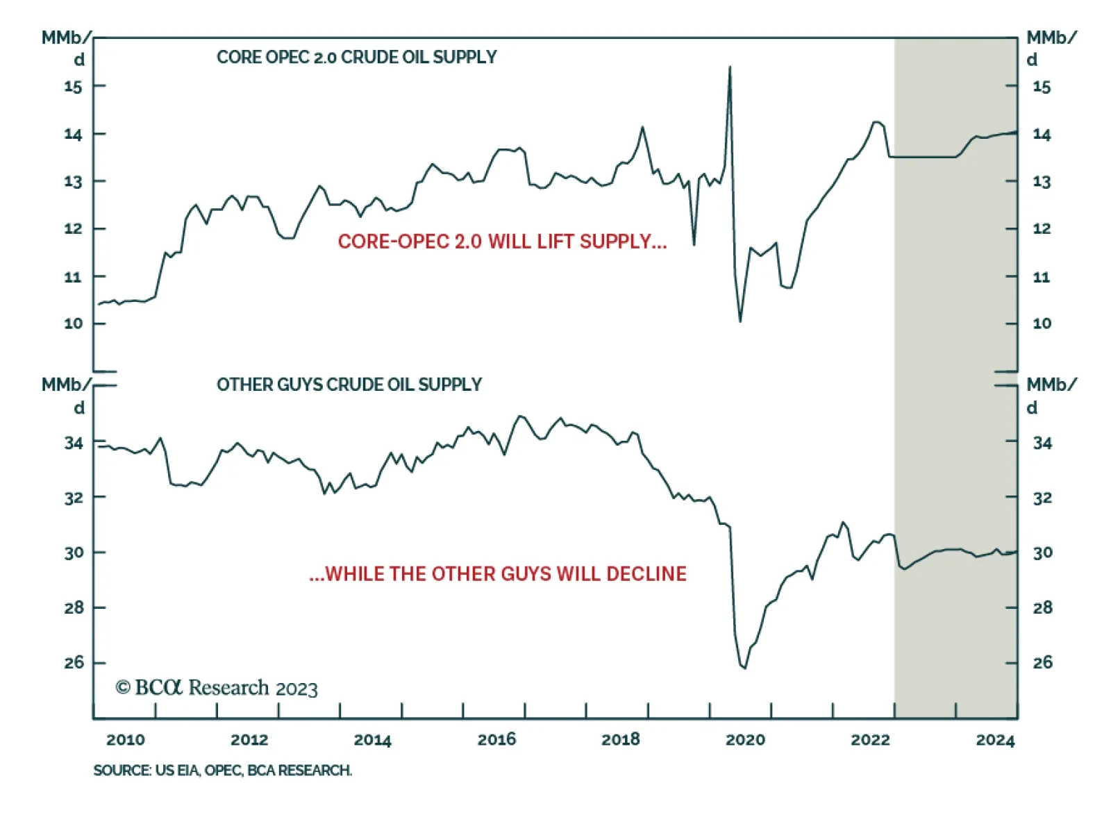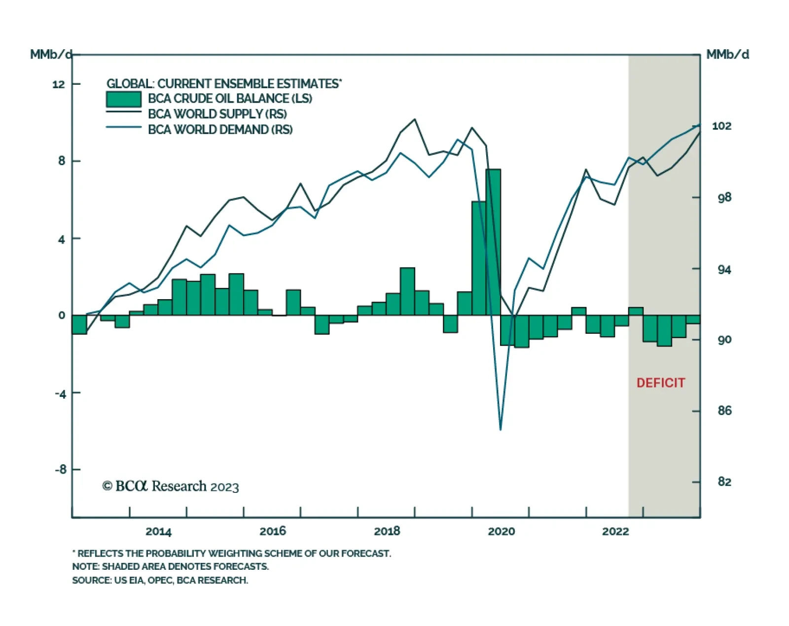China’s re-opening – powered by the fiscal and monetary stimulus required to achieve at least 5% real GDP growth after flattish 2022 growth – and a weaker USD will catalyze demand growth this year and next, lifting global oil consumption by close to 2mm and 1.7mm b/d in 2023 and 2024. We lowered our Brent forecast slightly for this year to $110/bbl, and expect 2024 prices to average $115/bbl. WTI will trade $4-$6/bbl lower.