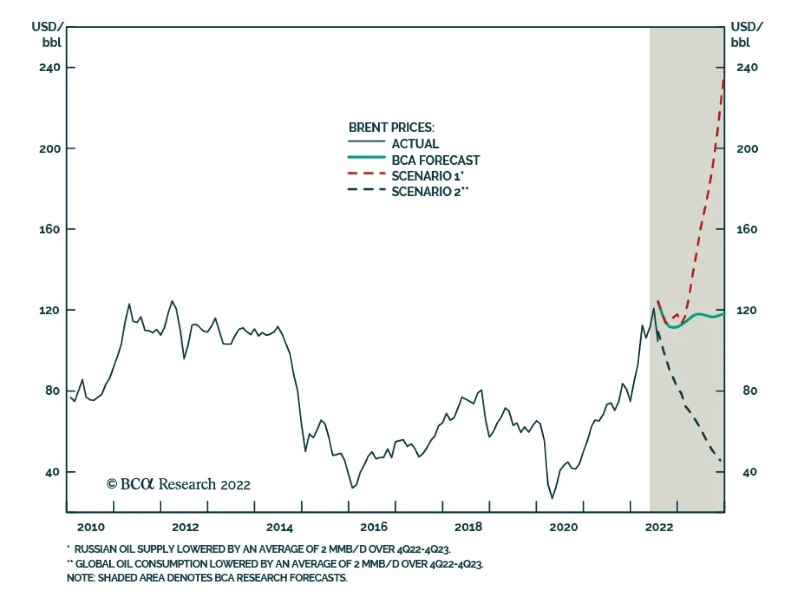 Despite global recession fears and uncertainty over Russia’s retaliation for the EU embargo against its exports, oil markets will continue to tighten. After breaching $15/bbl in June, the Dec22 vs Dec23 Brent backwardation – our preferred seasonal indicator for inventory tightness – is back above $10/bbl and rising. There is an increasing risk Russia will cut crude output, if G7 states impose a price cap on its oil sales. Our modeling indicates the loss of an additional 2mm b/d of Russian output vs our base case beginning in 4Q22 would lift prices above $220/bbl by 4Q23. On the downside, our modeling indicates the loss of 2mm b/d of demand vs our base case – i.e., essentially wiping out this year’s expected growth – would push average Brent prices toward $60/bbl next year. Our base case forecast for Brent crude oil is unchanged. We expect 2022 Brent to average $110/bbl, and for 2023 prices to average $117/bbl. WTI will trade $3-$4/bbl below Brent. Bottom Line: We expect markets to continue to tighten as the EU embargo of Russia oil progresses. A price cap on Russian oil sales could lead to a production cut that takes prices above $220/bbl by 4Q23. An economic collapse could push Brent toward $60/bbl. Risks remain skewed to the upside. Our base case Brent price forecast remains unchanged: $110/bbl on average this year and $117/bbl in 2023. Feature The global oil market is tightening even with China demand restrained by its zero-Covid-19 tolerance policy, and parts of Europe almost surely facing recession if Russian pipeline gas supplies are cut off or tighten significantly between now and the approach of winter. Upside price risk dominates, in our view. Our Brent price forecast remains unchanged, averaging $110/bbl this year and $117/bbl in 2023. Markets remain tight: Oil supply will remain below demand, which will force inventories to draw (Chart 1). Related Report Commodity & Energy StrategyRecession Unlikely To Batter Oil Prices This will push Brent into a steeper backwardation going into year-end, forcing the Dec22 v Dec23 Brent spread higher (Chart 2). High levels of backwardation – i.e., prompt-delivery futures trading above deferred-delivery futures – is how inventory tightness manifests itself: Refiners are willing to pay more for prompt delivery than deferred delivery, because they need oil now to meet demand. This is occurring despite weaker demand coming out of China and EU states, as the latter begins to ration energy supplies ahead of the coming winter. Chart 1Inventories Will Tighten