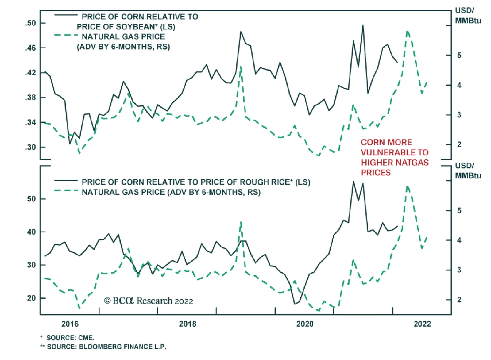 Ag markets are confronting massive cost increases brought about by natgas shortages that first surfaced in 2021 and will continue to dog European and Asian fertilizer markets this year (Chart 3). These tight conditions leave markets vulnerable to unexpected supply and demand shocks, no matter how short-lived they might be. This is easily seen in oil markets: A force majeure declaration by Libya's national oil company following unplanned production shutdowns and pipeline maintenance pulled output below 800k b/d, or 30% lower than November 2021 levels, and almost completely neutralized a supply increase agreed by OPEC 2.0 earlier this week. Combined with what appears to be a relatively sanguine read-through on the impact of surging omicron infections in major consuming markets, these developments took prompt Brent back above $80/bbl.2 Chart 3Tight Natgas Markets Drive Fertilizer/Grain Prices Higher