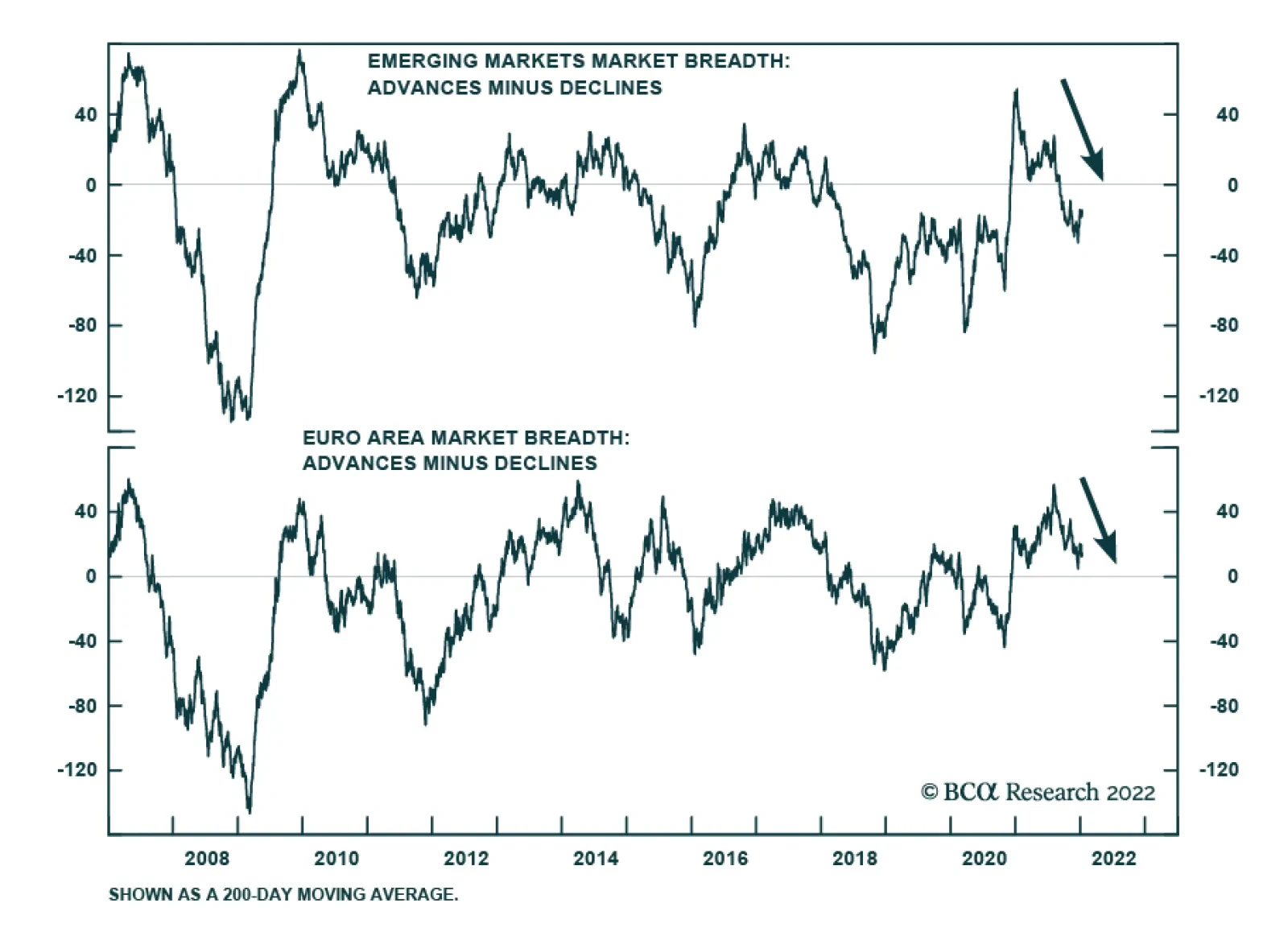US stocks are not alone experiencing deteriorating market breadth. The chart above highlights that equity market performance has also narrowed among non-US stocks. Emerging market equities experienced a sharp drop in breadth over the course of last year.…