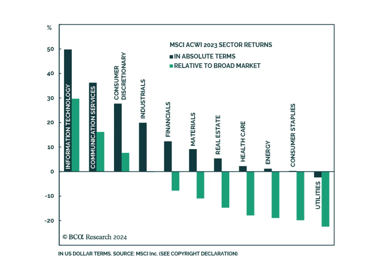 The AI craze was the dominant force driving difference in equity sector returns in 2023. Broadly-defined technology sectors were the top three outperformers last year with IT, Communication Services, and Consumer Discretionary…