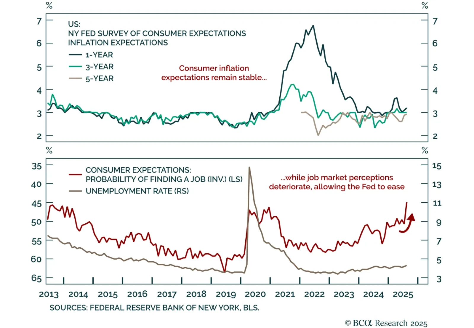 Stable long-term inflation expectations and weak labor perceptions support a defensive stance. The NY Fed Survey of Consumer Expectations showed 1-year inflation expectations ticking up to 3.2% in August, while the 3-year (3.0…